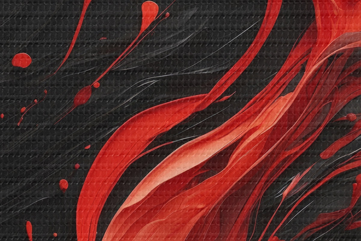 Кругла картина Червоний потік фарби на чорному абстрактному тлі r44889