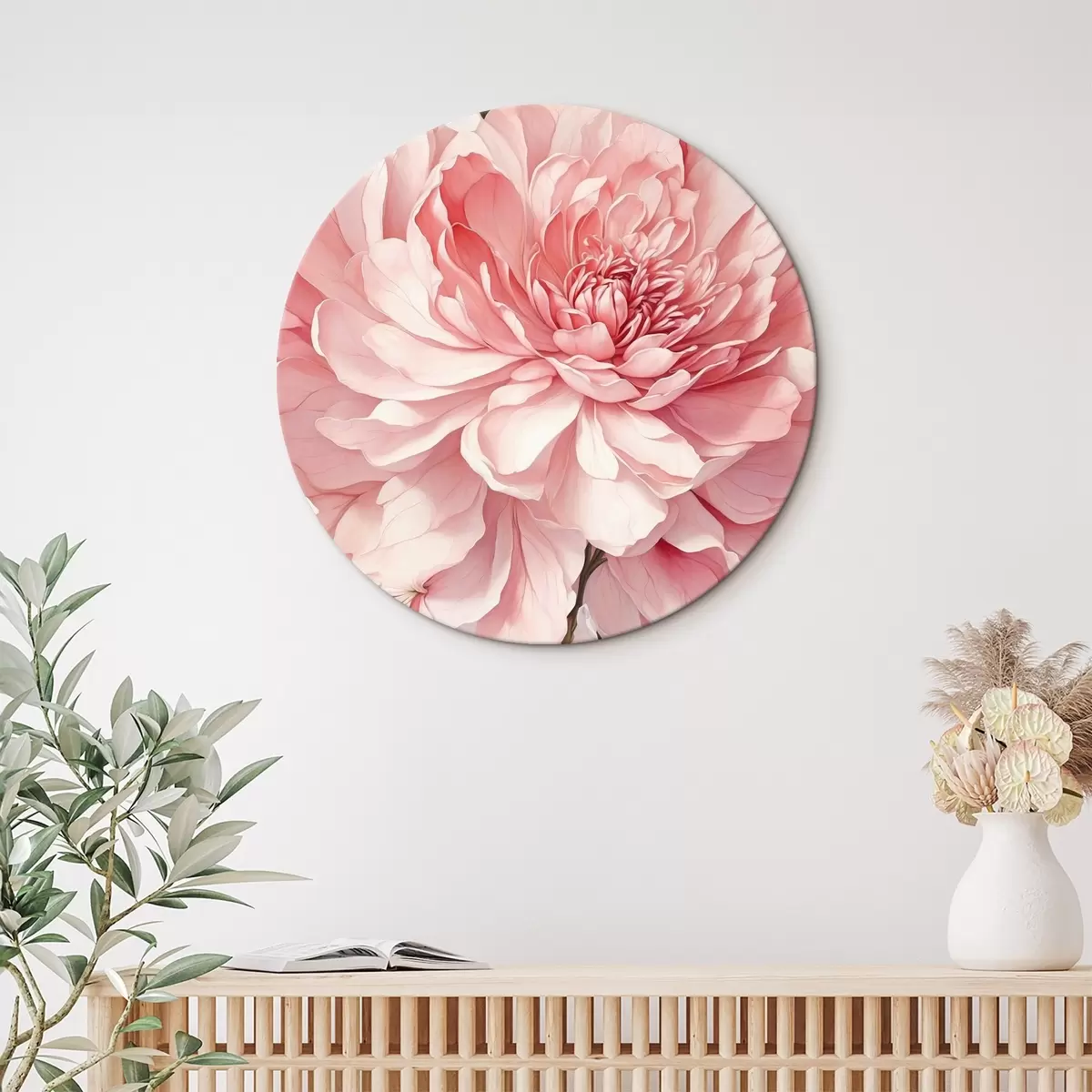 Кругла картина Рожева півонія крупним планом при м'якому освітленні Nr r44891