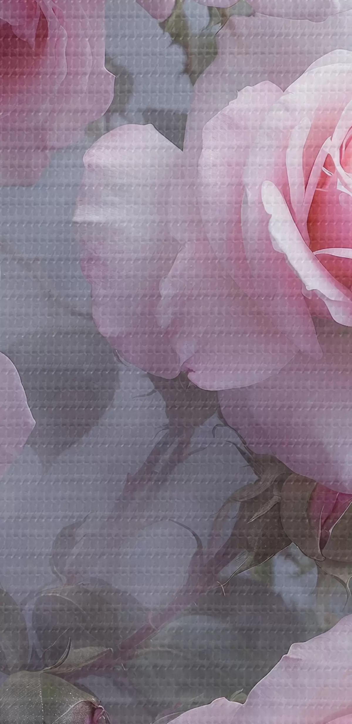 Кругла картина Ніжно-рожеві троянди в тумані з зеленим листям r44892