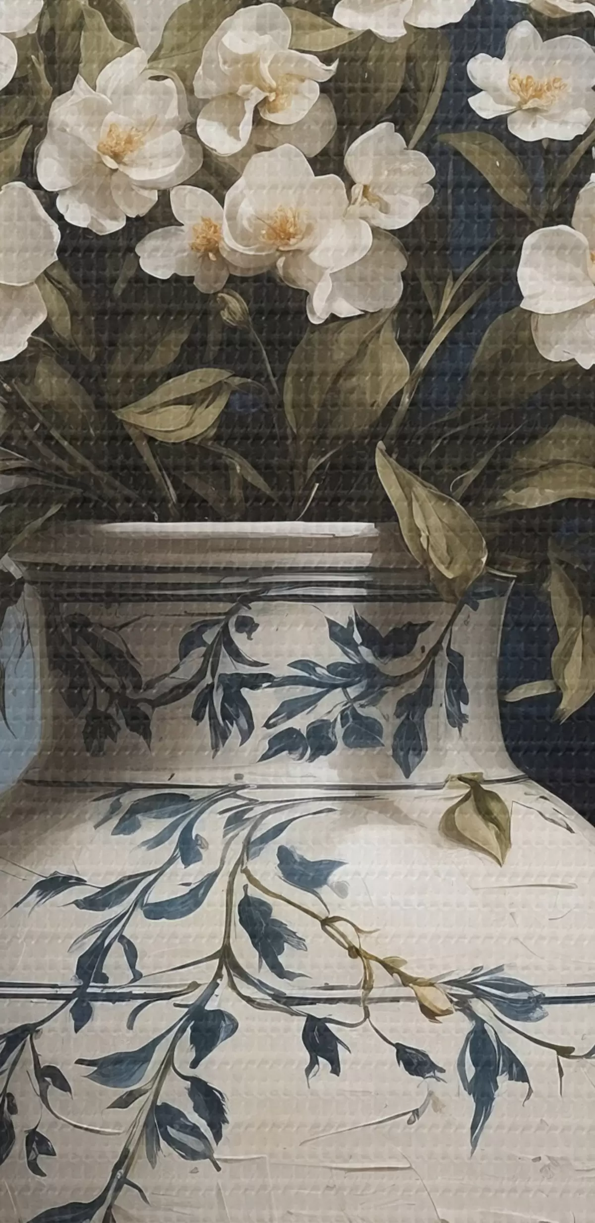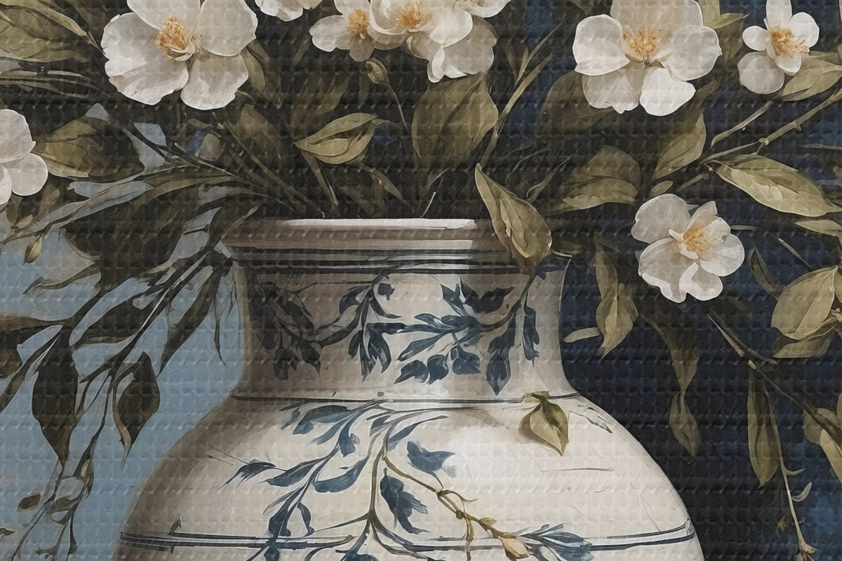 Кругла картина Біло-жовті квіти у великій вазі на синьому тлі Nr r44893