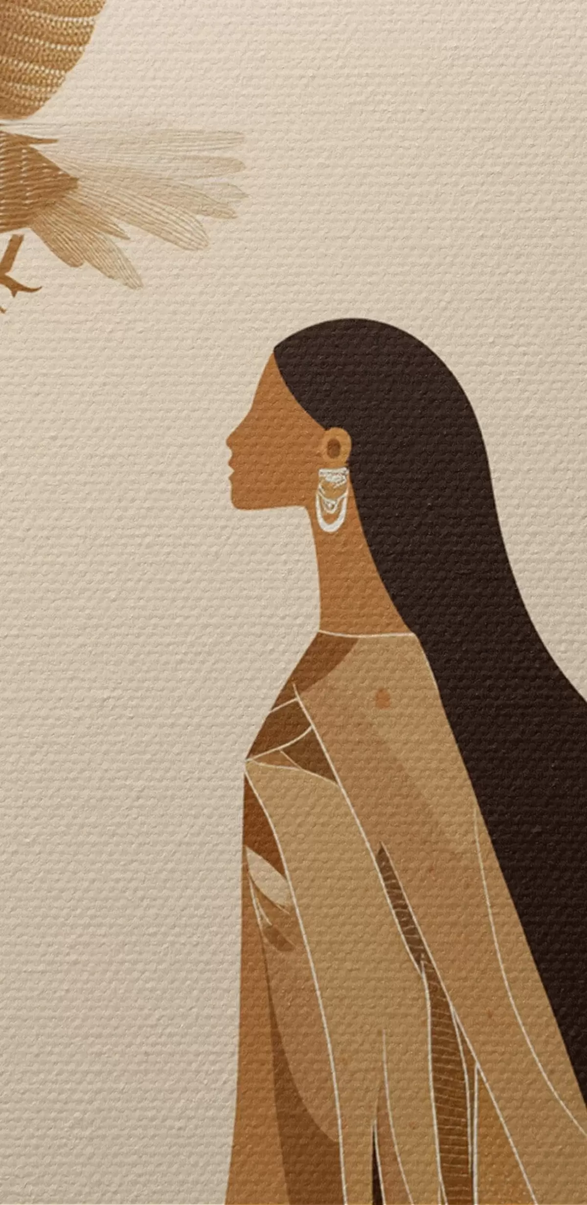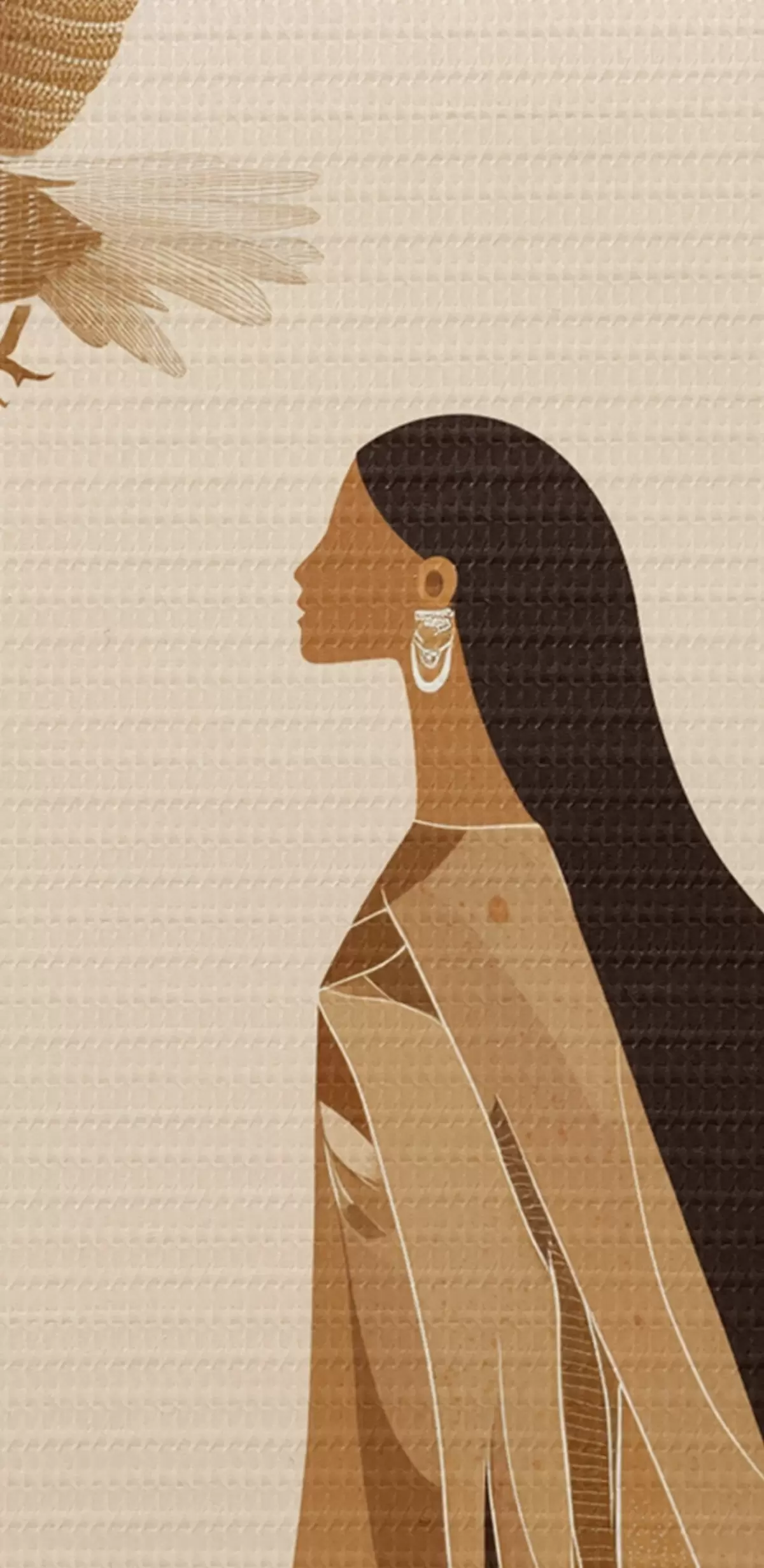 Кругла картина Абстракція з жінкою та орлом у небі, бежеві кольори r44978