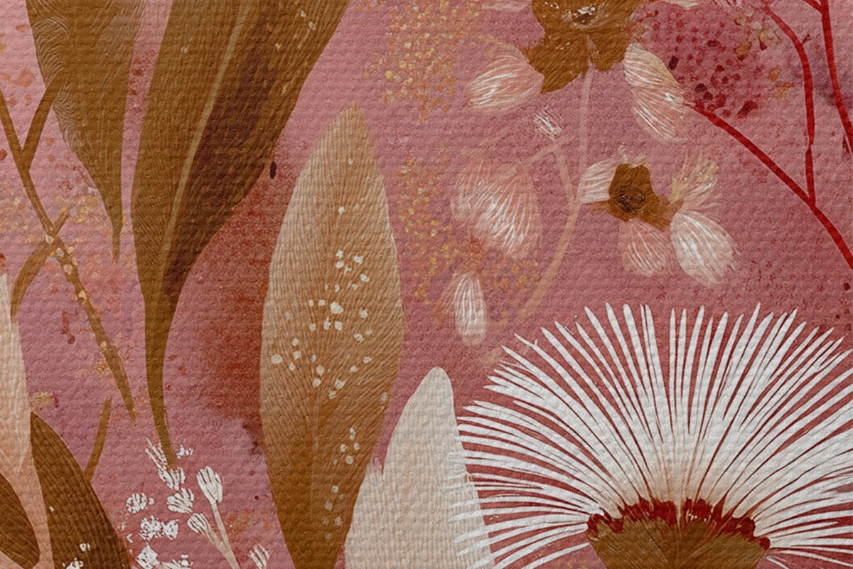 Кругла картина Білі квіти в стилі бохо на червоному тлі, детальний малюнок r44979