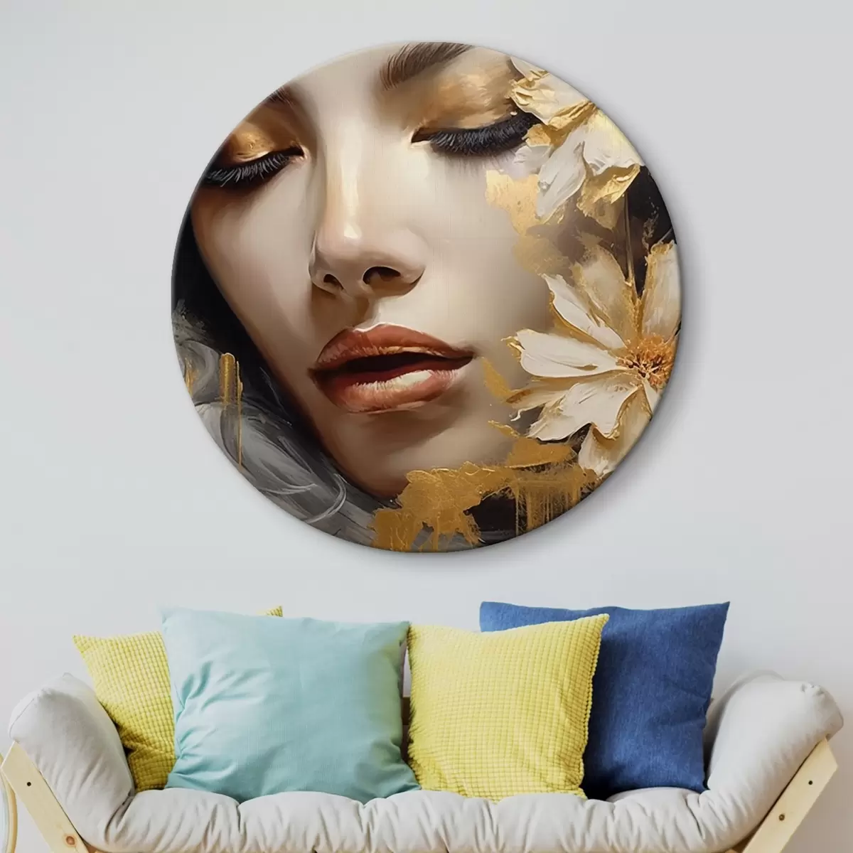 Кругла картина Жіночий портрет з квітами Nr r45002