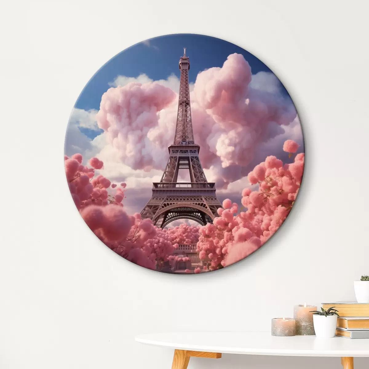 Кругла картина Ейфелева вежа в рожевих хмарах у стилі фентезі r45036