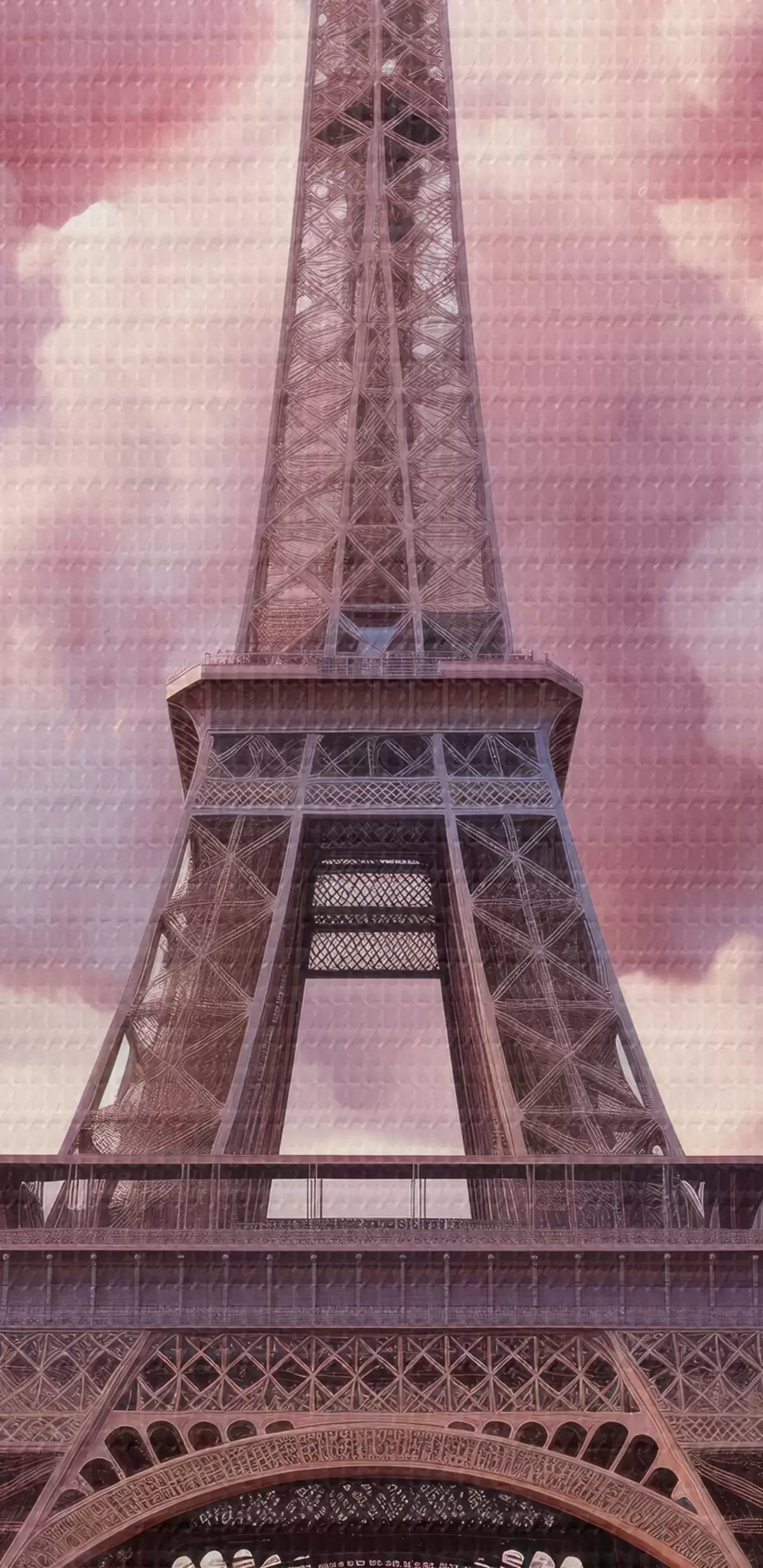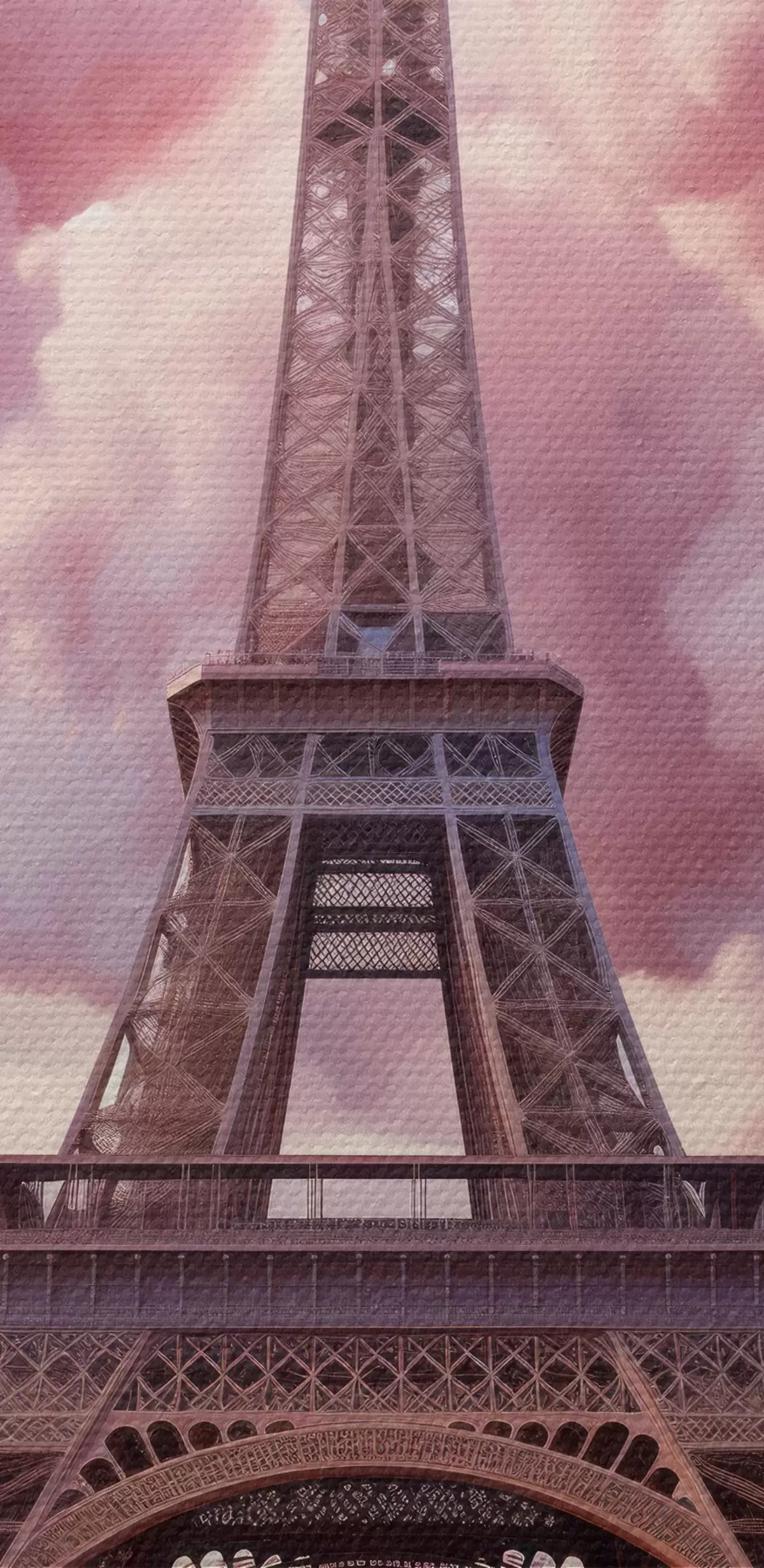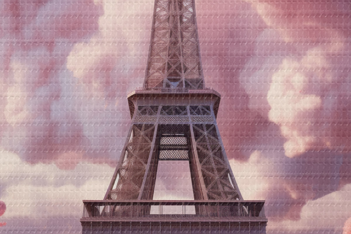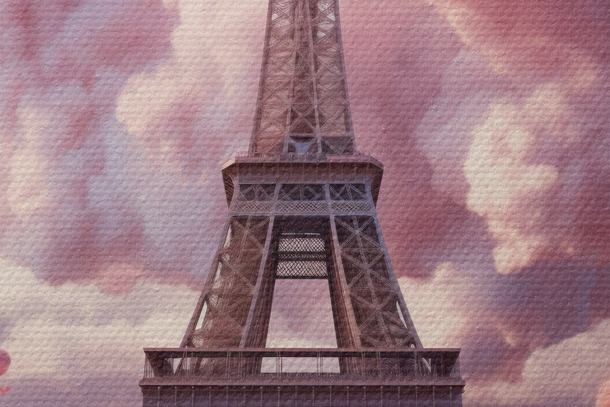 Кругла картина Ейфелева вежа в рожевих хмарах у стилі фентезі Nr r45036