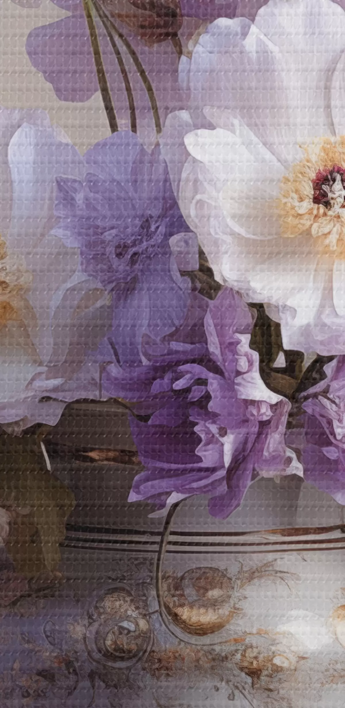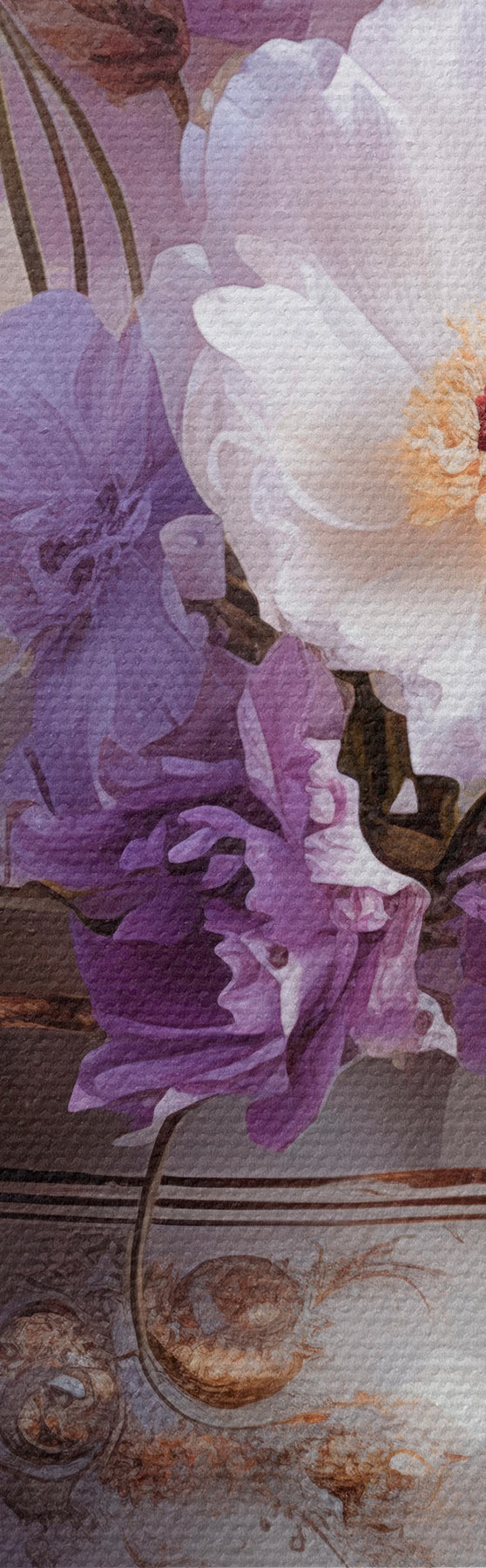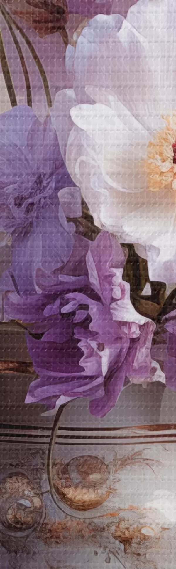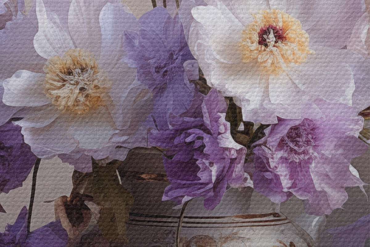 Кругла картина Квітковий натюрморт: білі та фіолетові квіти в художньому стилі Nr r45058