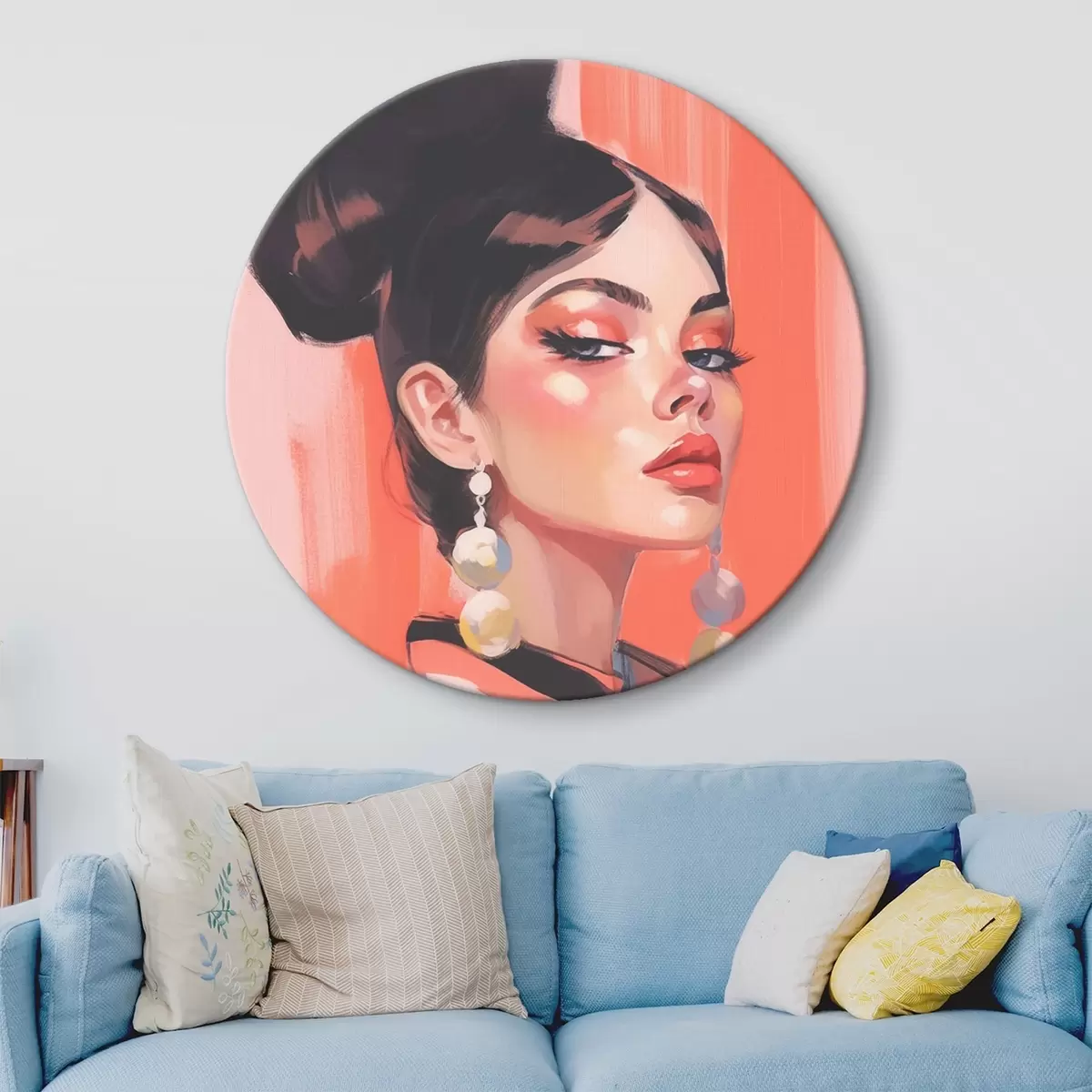 Кругла картина Портрет жінки у смугастій сорочці Nr r45079
