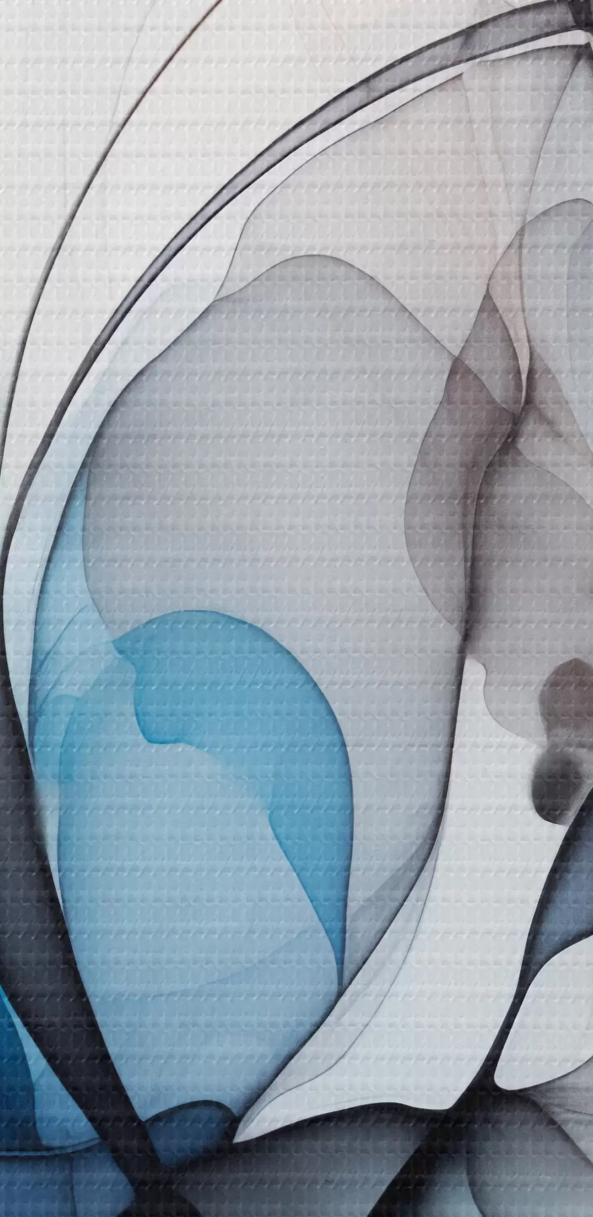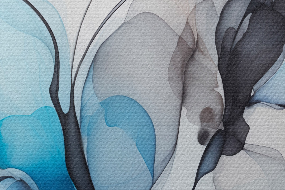 Кругла картина Абстрактна композиція з плавними лініями та напівпрозорими пелюстками у відтінках синього, білого та бежевого, імітація спиртового чорнила Nr r45177