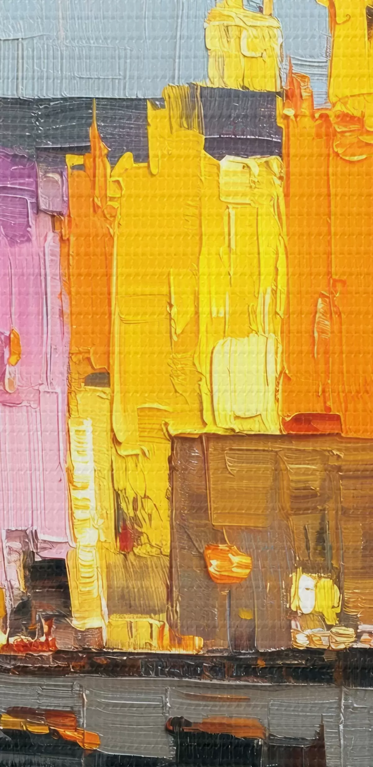 Кругла картина Вогні міста: яскравий пейзаж у стилі імпасто r45242