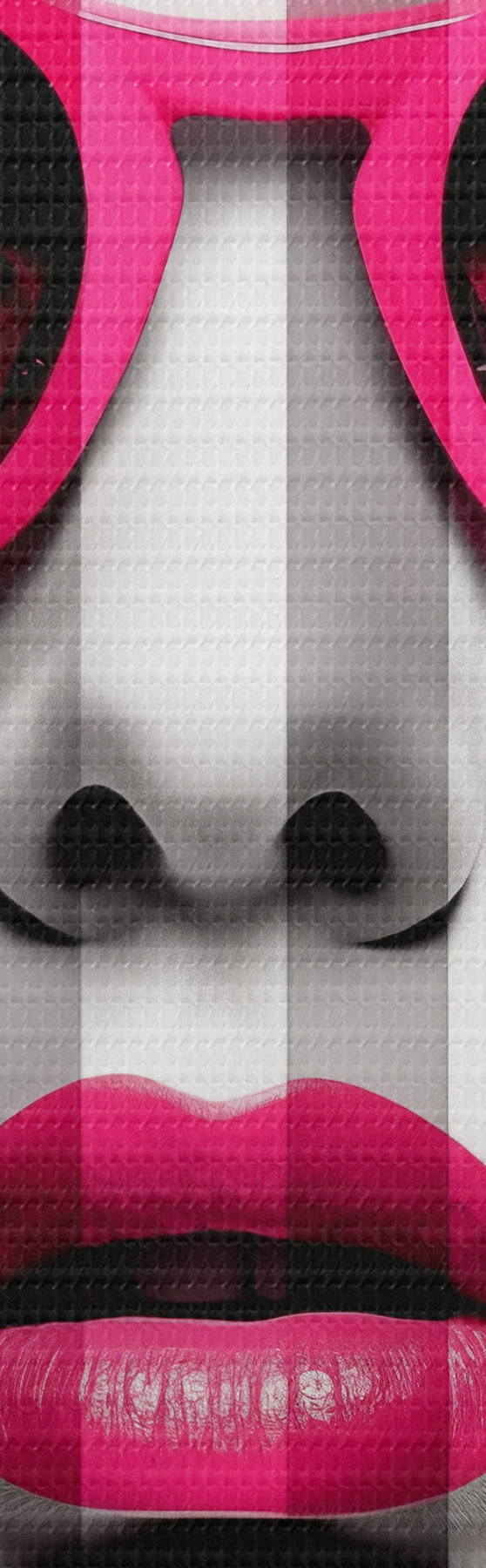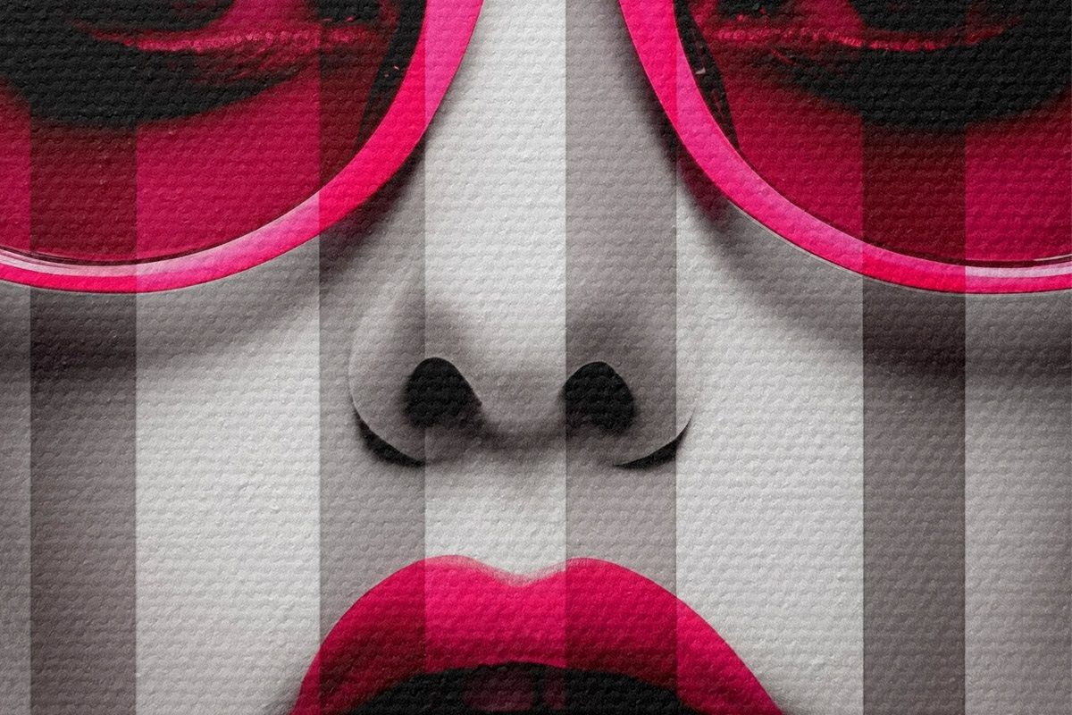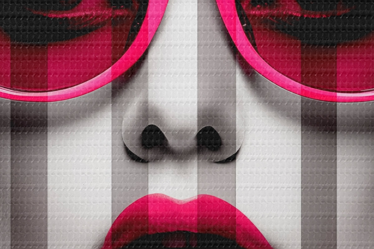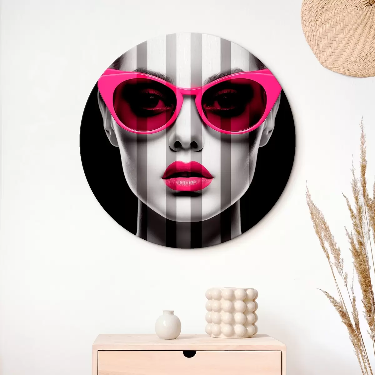 Кругла картина Жінка в рожевих окулярах з чорно-білими смужками r45315