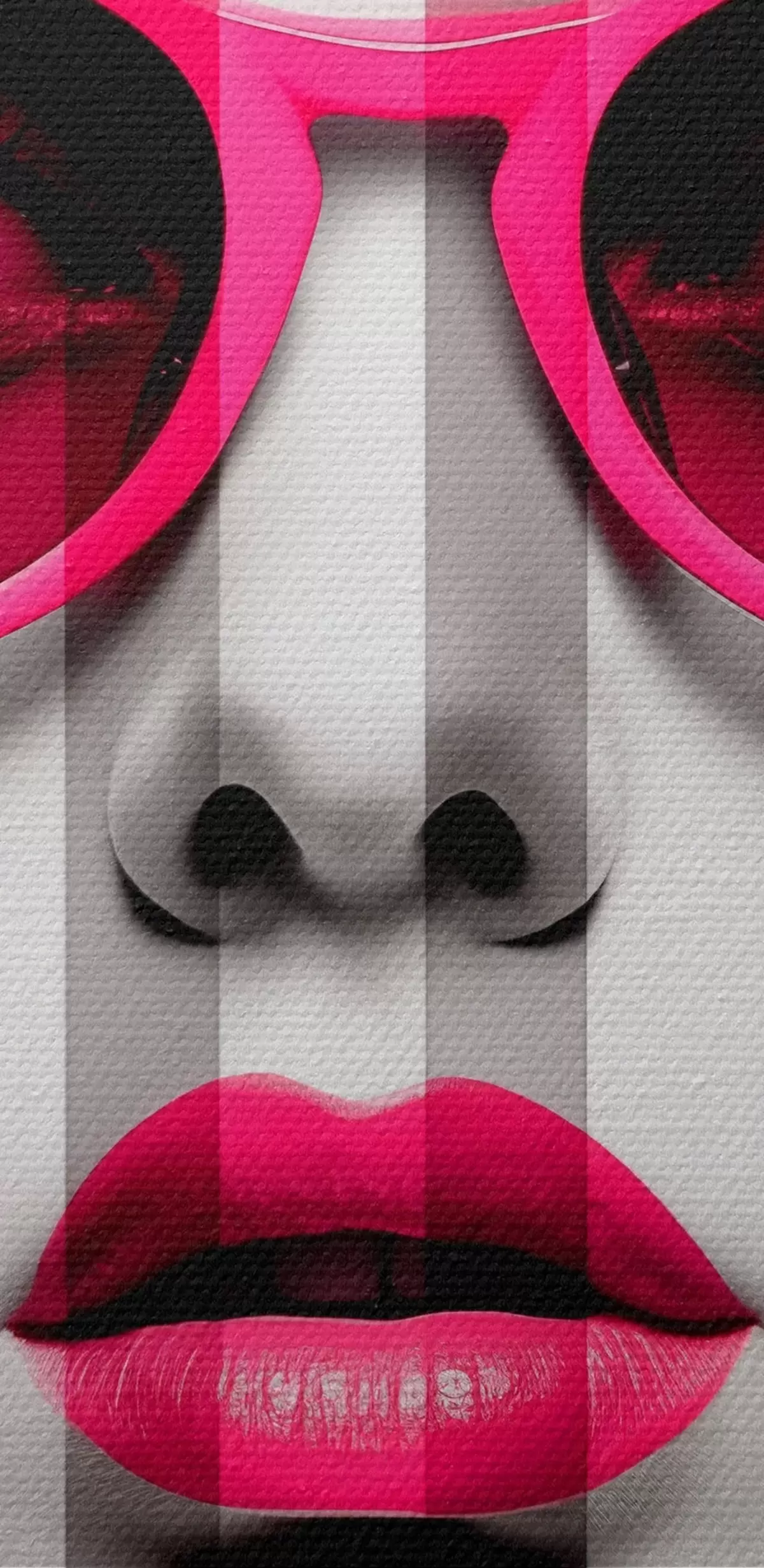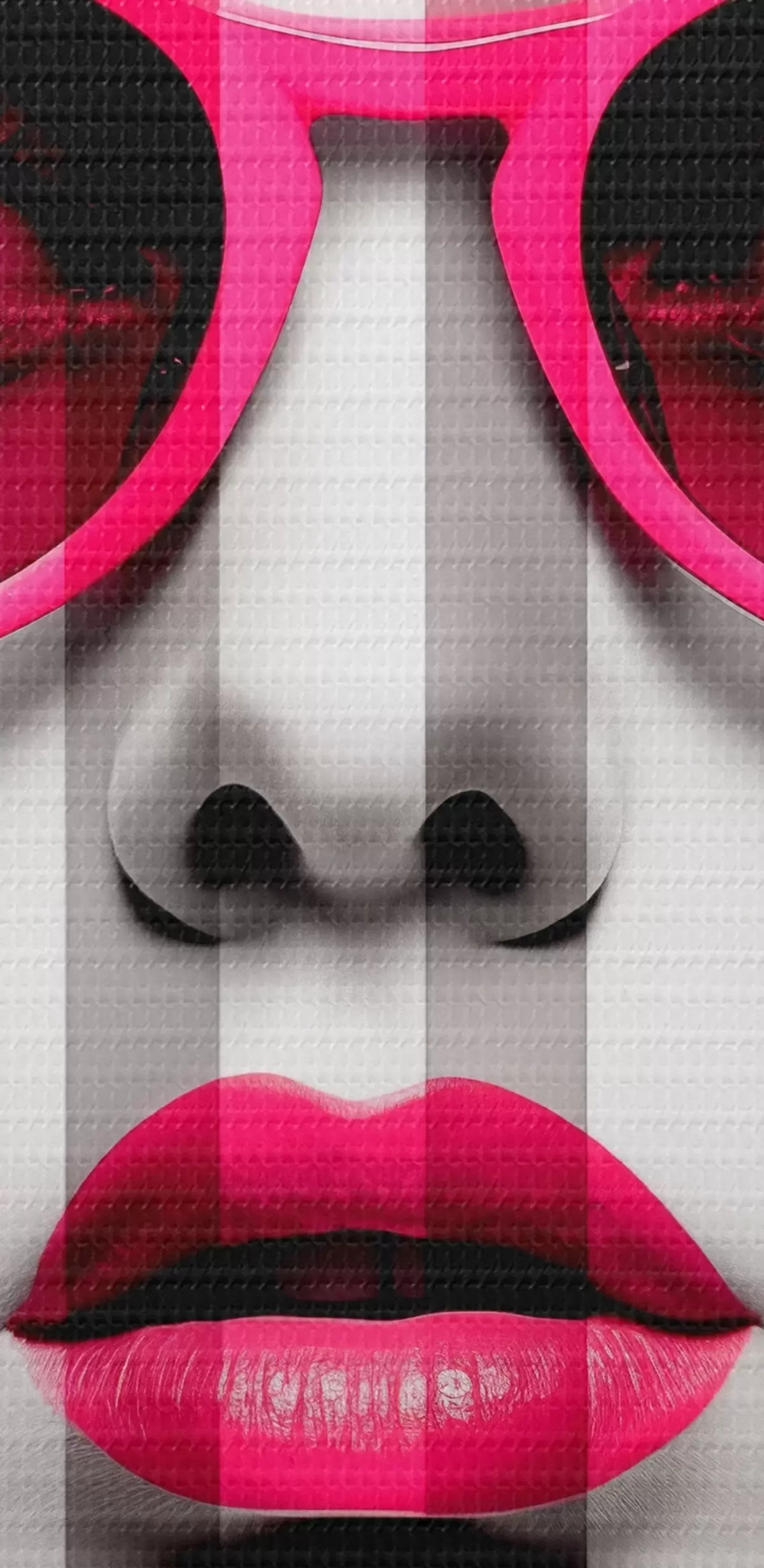 Кругла картина Жінка в рожевих окулярах з чорно-білими смужками r45315