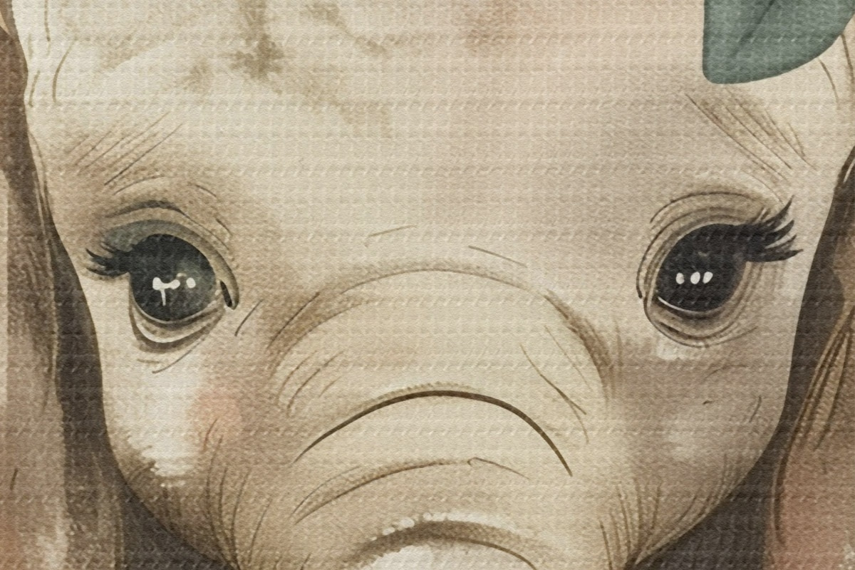 Кругла картина Симпатичний акварельний слон з квітами Nr r45330