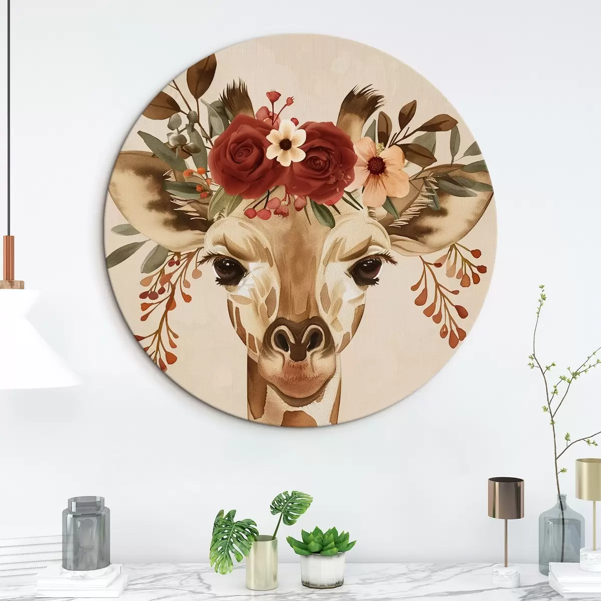 Кругла картина Жираф в акварельному стилі з квітами на голові Nr r45331
