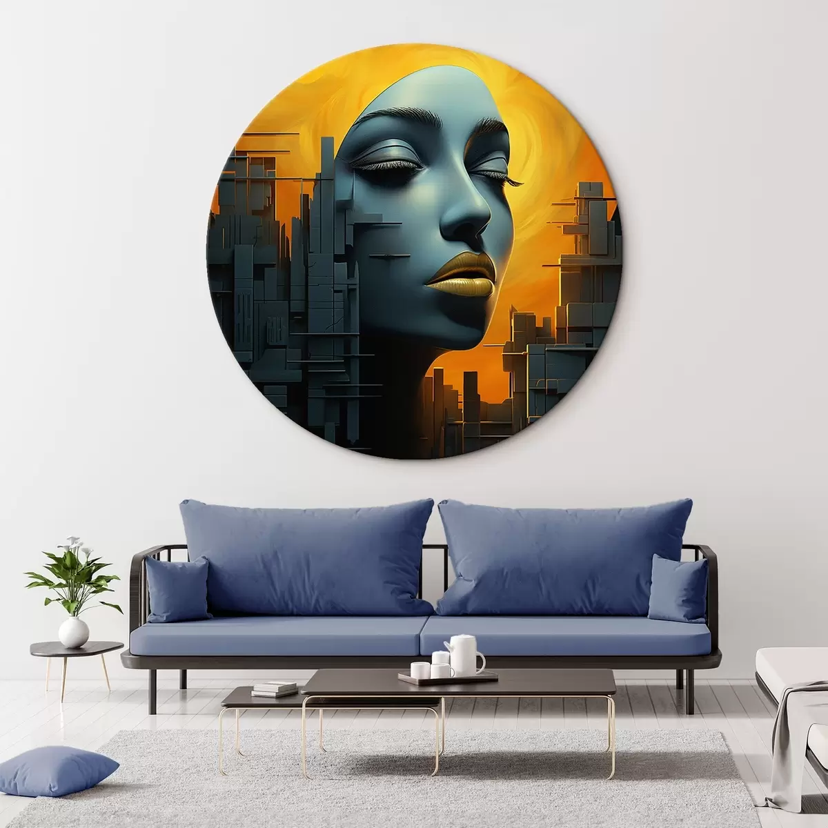 Кругла картина Люди, обличчя дівчини, місто на абстрактному тлі r45342