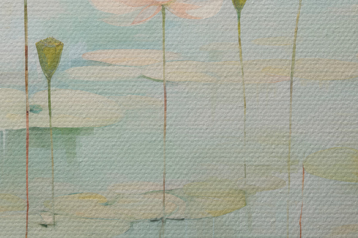 Кругла картина Листя і квіти лотоса на ставку r45350