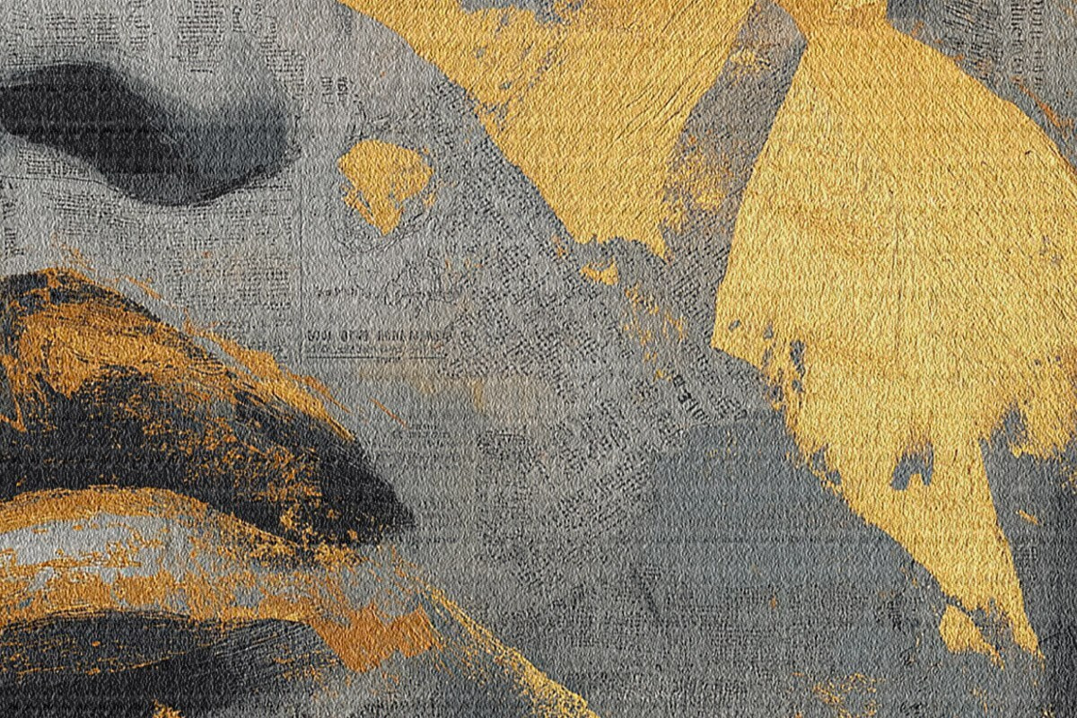 Кругла картина Портрет у змішаній техніці з газетними фрагментами та декоративними мазками Nr r45419