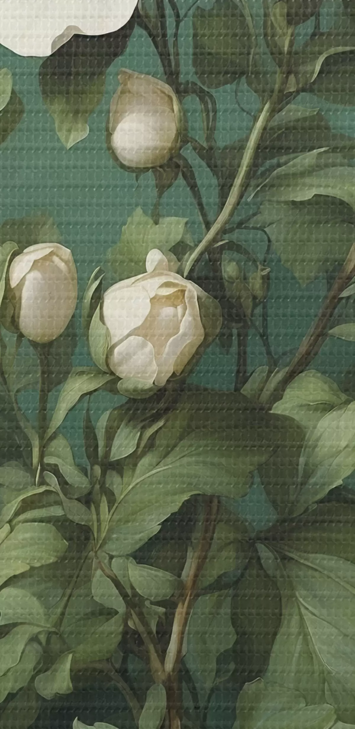 Кругла картина Кремові квіти півонії на зеленому тлі Nr r45491