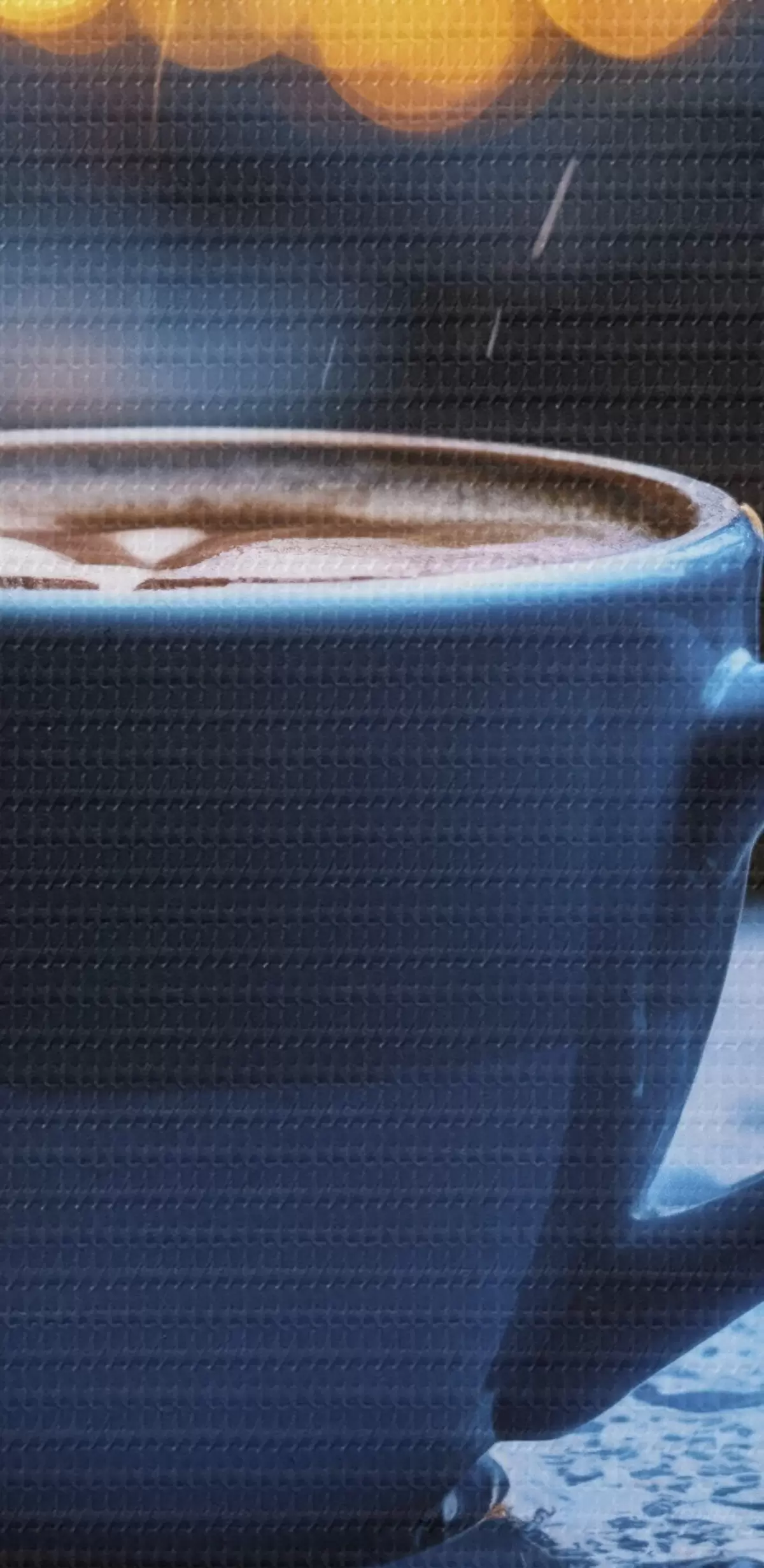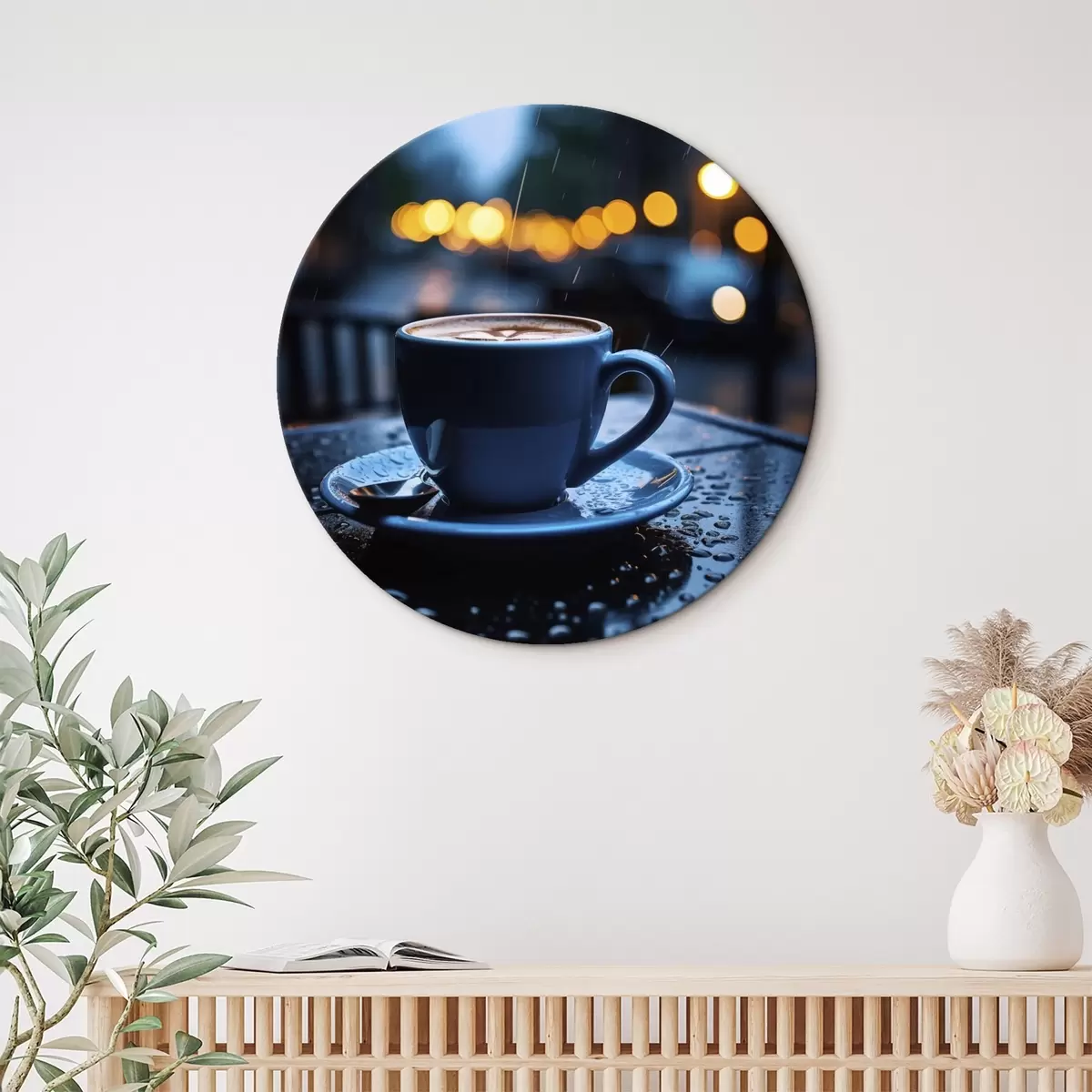 Кругла картина Чашка кави на столі під час дощу Nr r45497