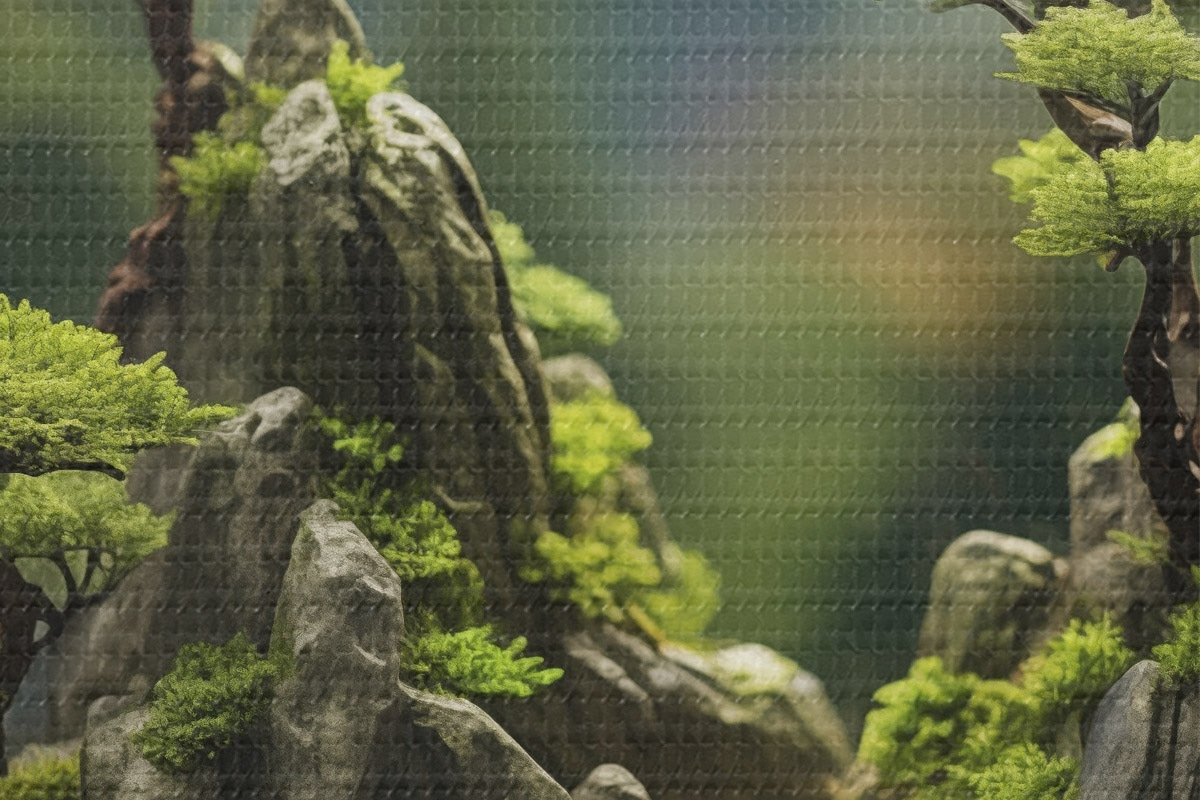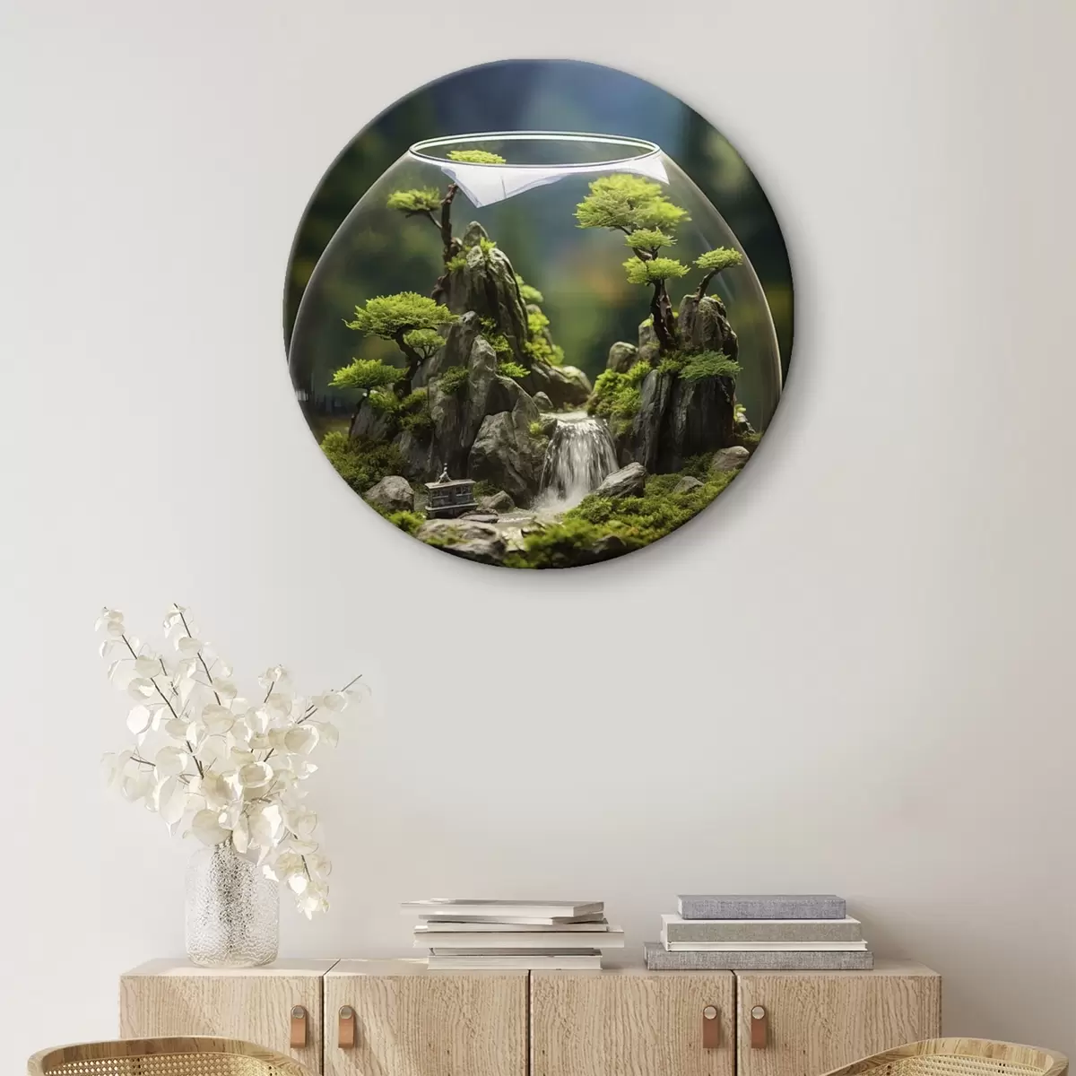 Кругла картина Мініатюрний пейзаж з водоспадом у скляній кулі Nr r45502