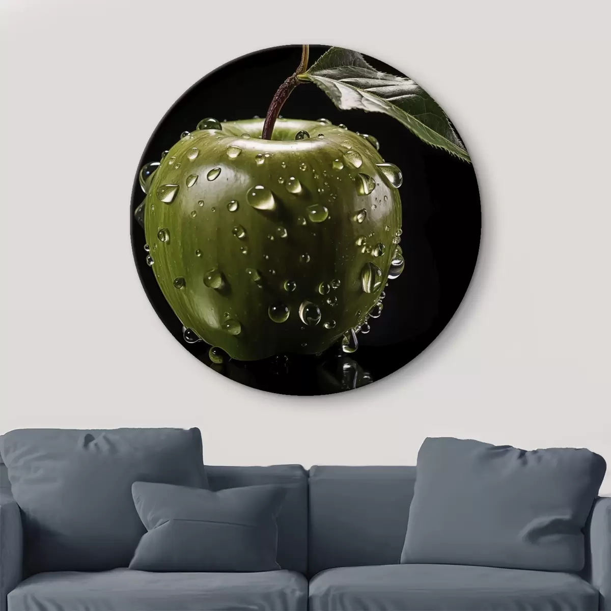 Кругла картина Зелене яблуко з краплями води Nr r45506