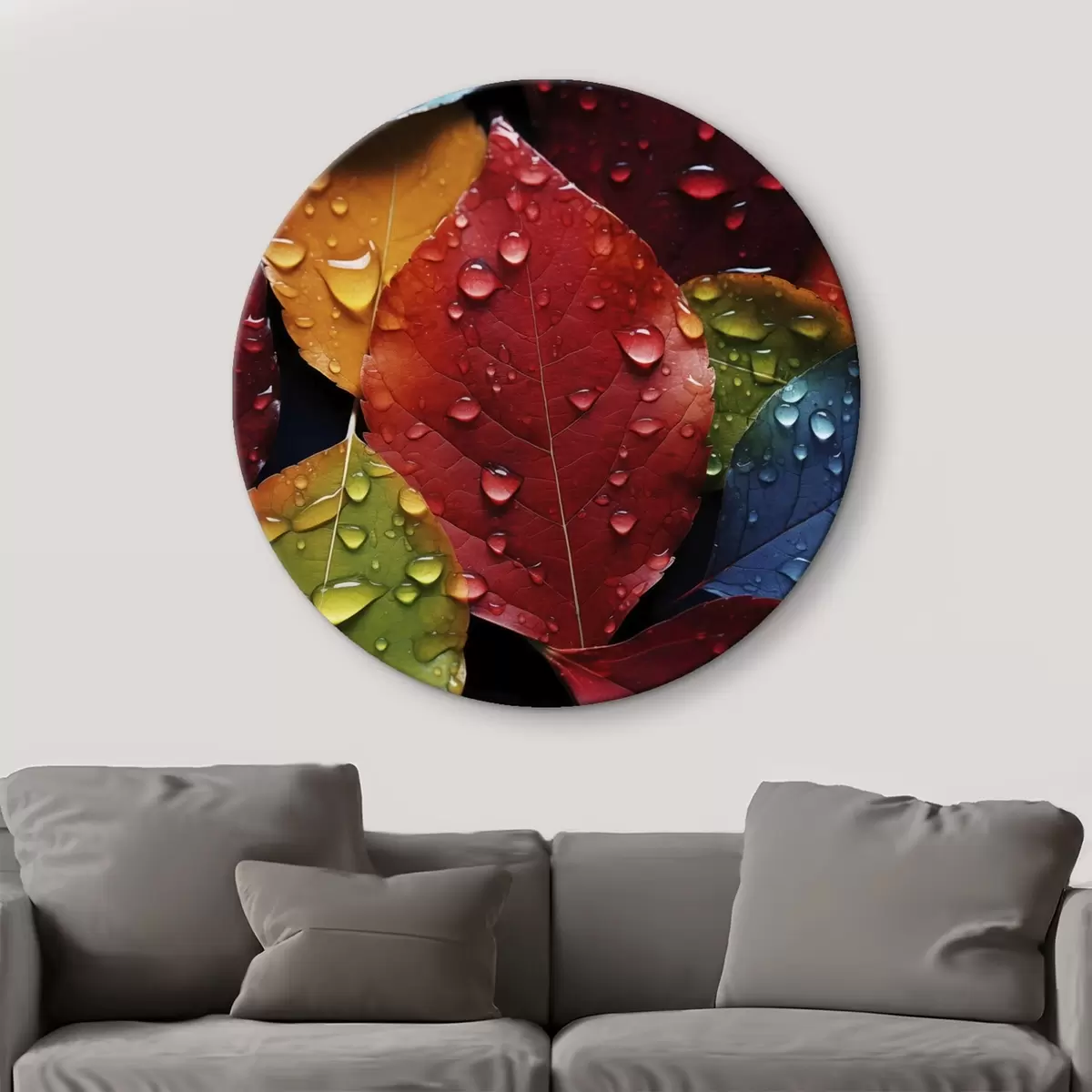 Кругла картина Барвисте листя з крапельками води Nr r45516