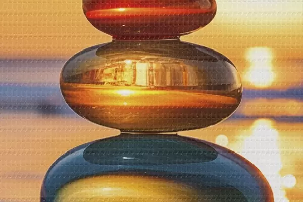 Кругла картина Складені камені на тлі заходу сонця Nr r45520