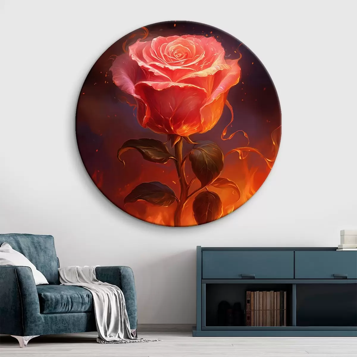 Кругла картина Червона троянда серед вогню та іскор r45523