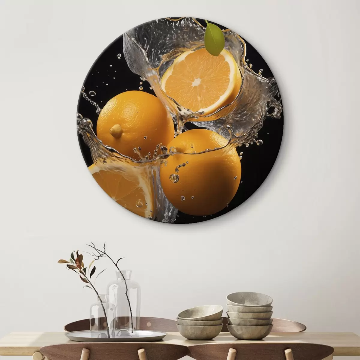 Кругла картина Соковиті апельсини у водяних бризках r45526