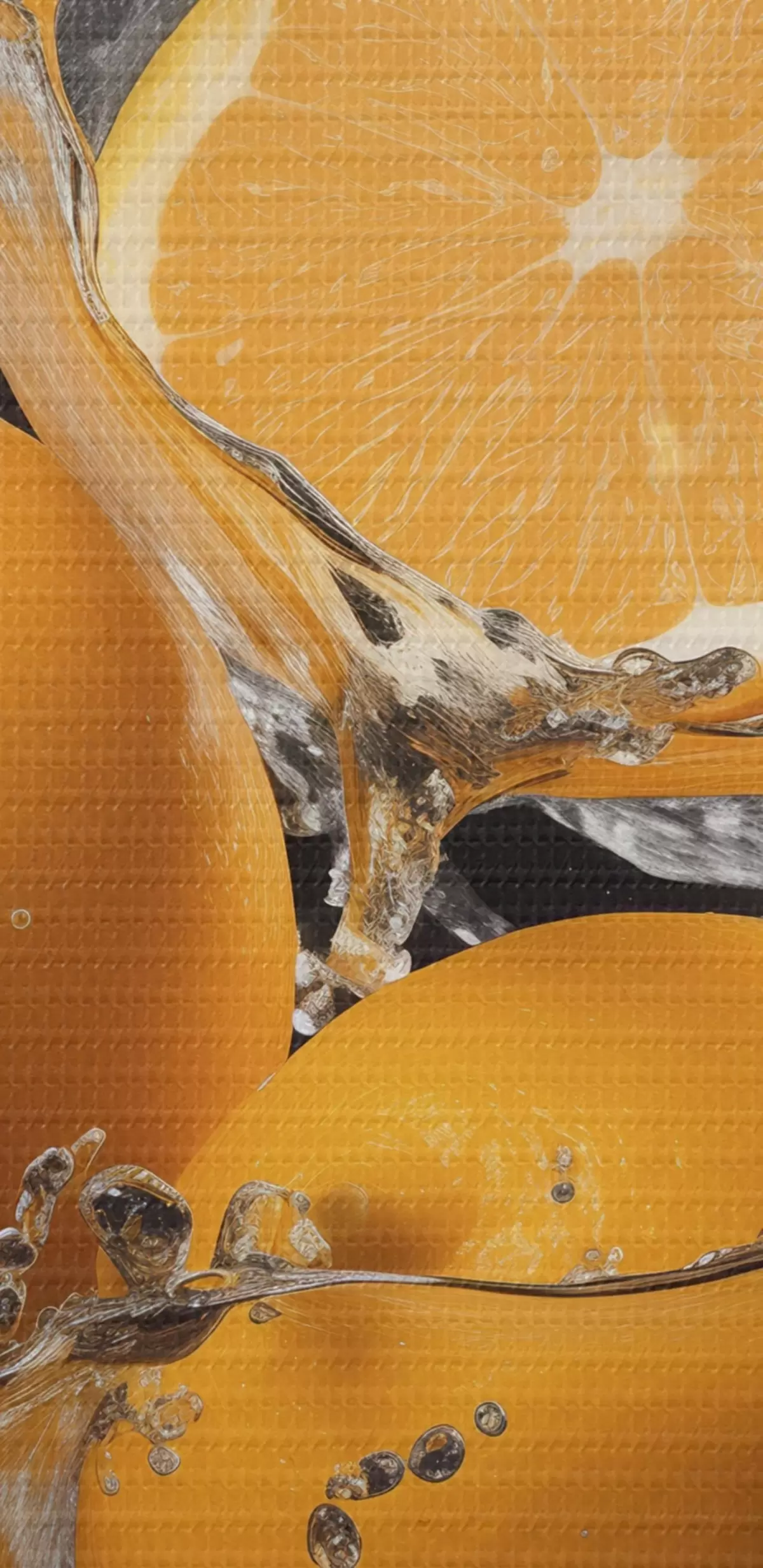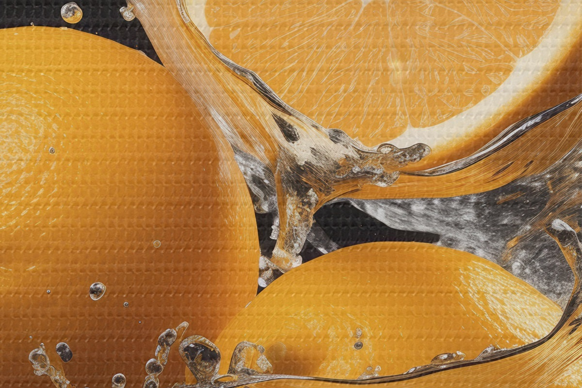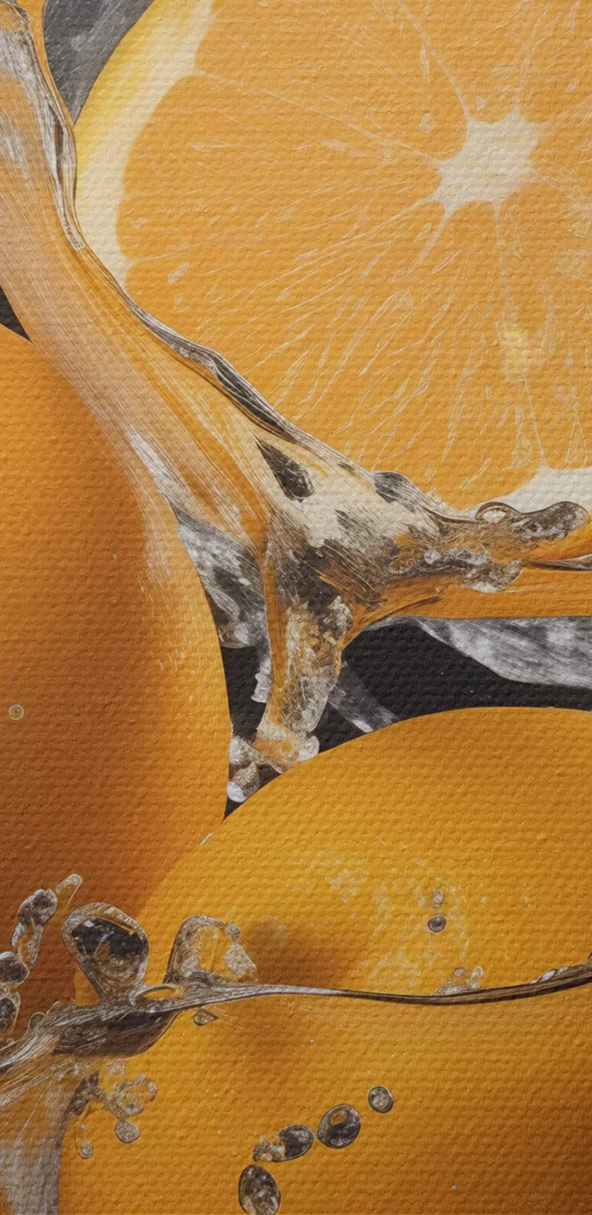 Кругла картина Соковиті апельсини у водяних бризках Nr r45526