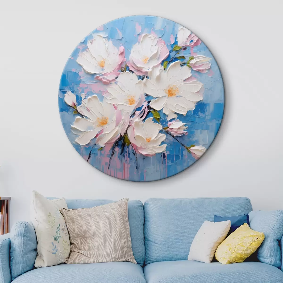 Кругла картина Об'ємні квіти: композиція в стилі олійного живопису Nr r45537