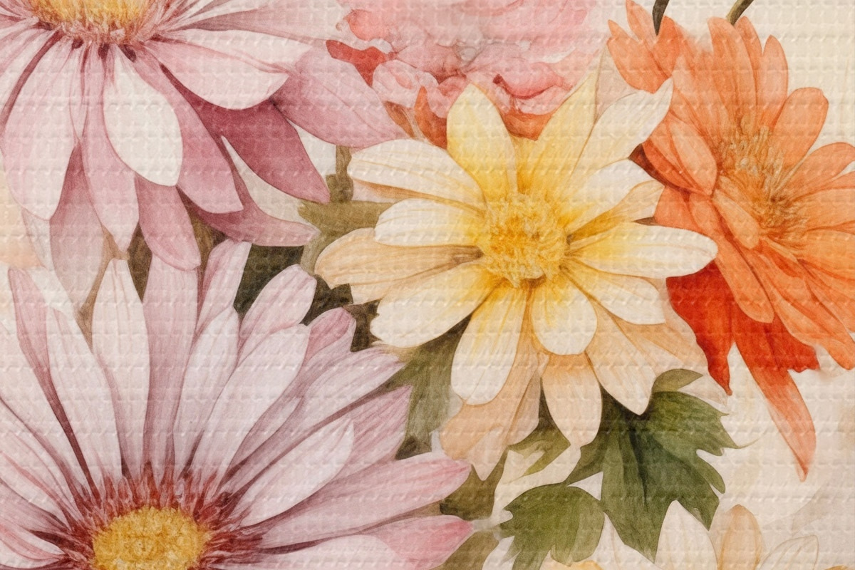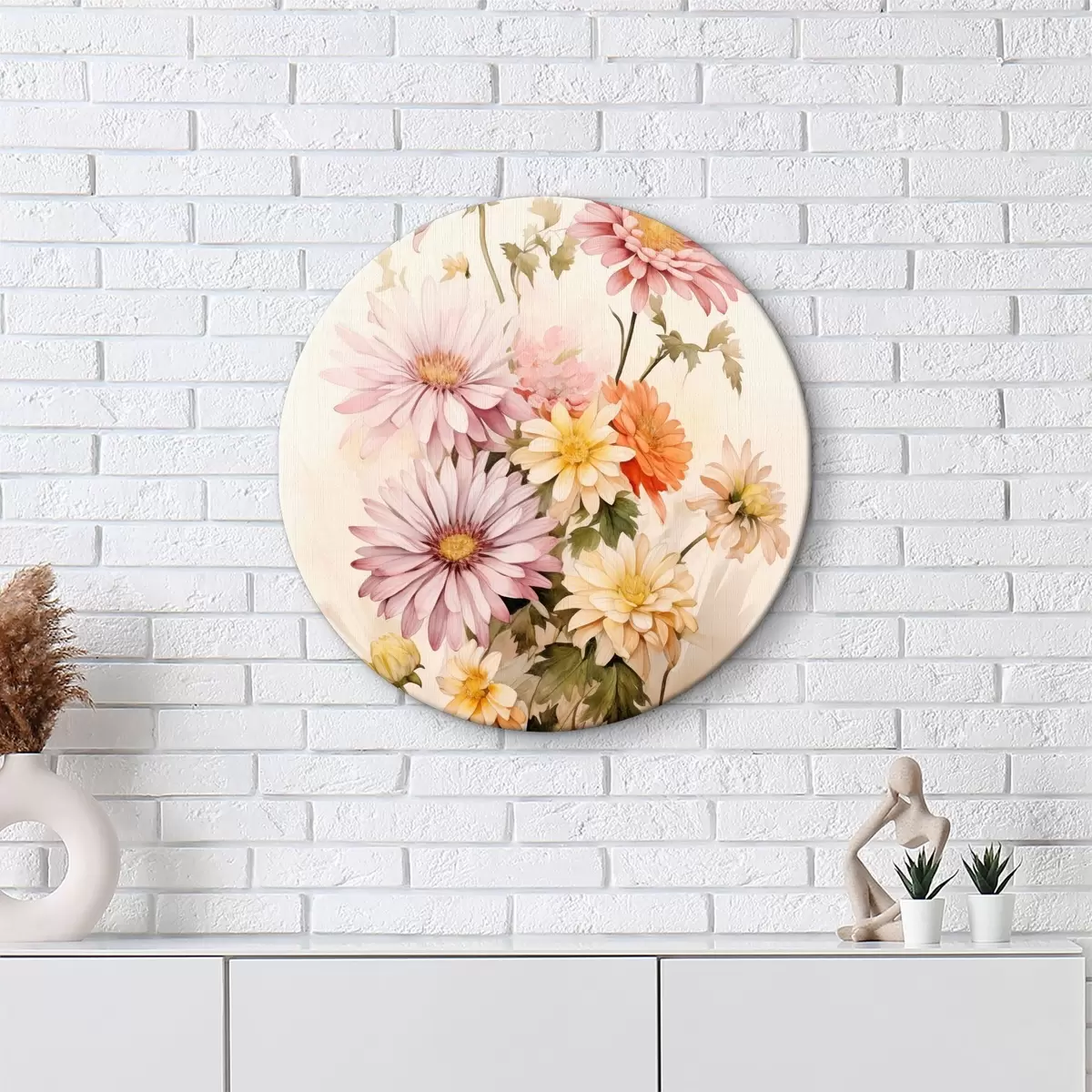Кругла картина Букет різнокольорових квітів, м'який акварельний стиль, на світлому фоні r45559