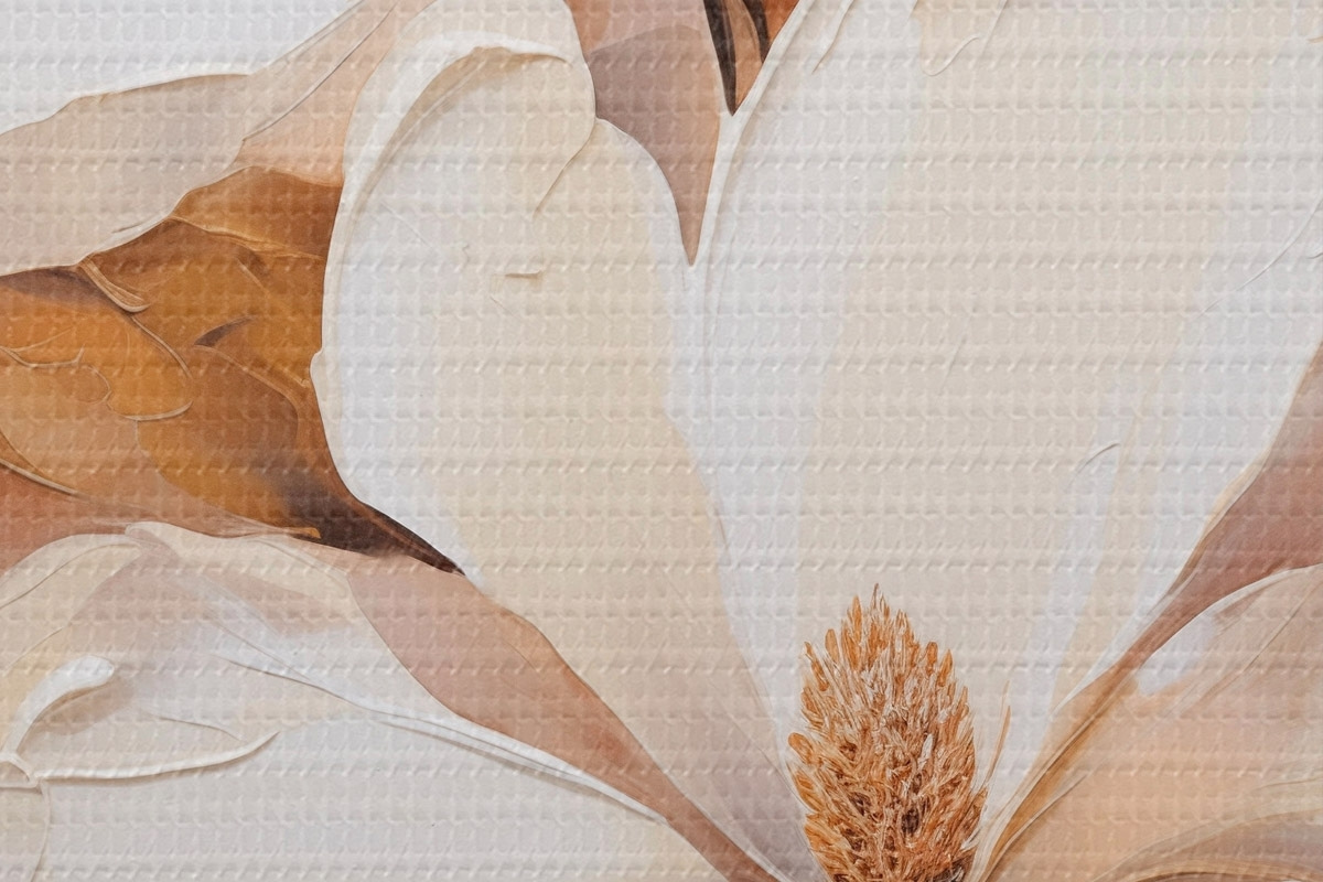 Кругла картина Білі квіти магнолії на м'якому, розмитому тлі бежевих і коричневих тонів, стиль живопису Nr r45572