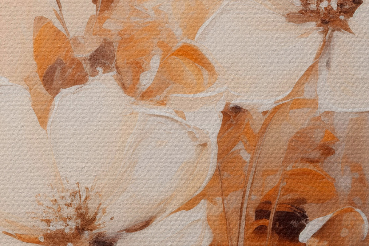 Кругла картина Білі квіти з помаранчевим листям, ніжні мазки, тепла палітра кольорів, елегантна композиція r45573