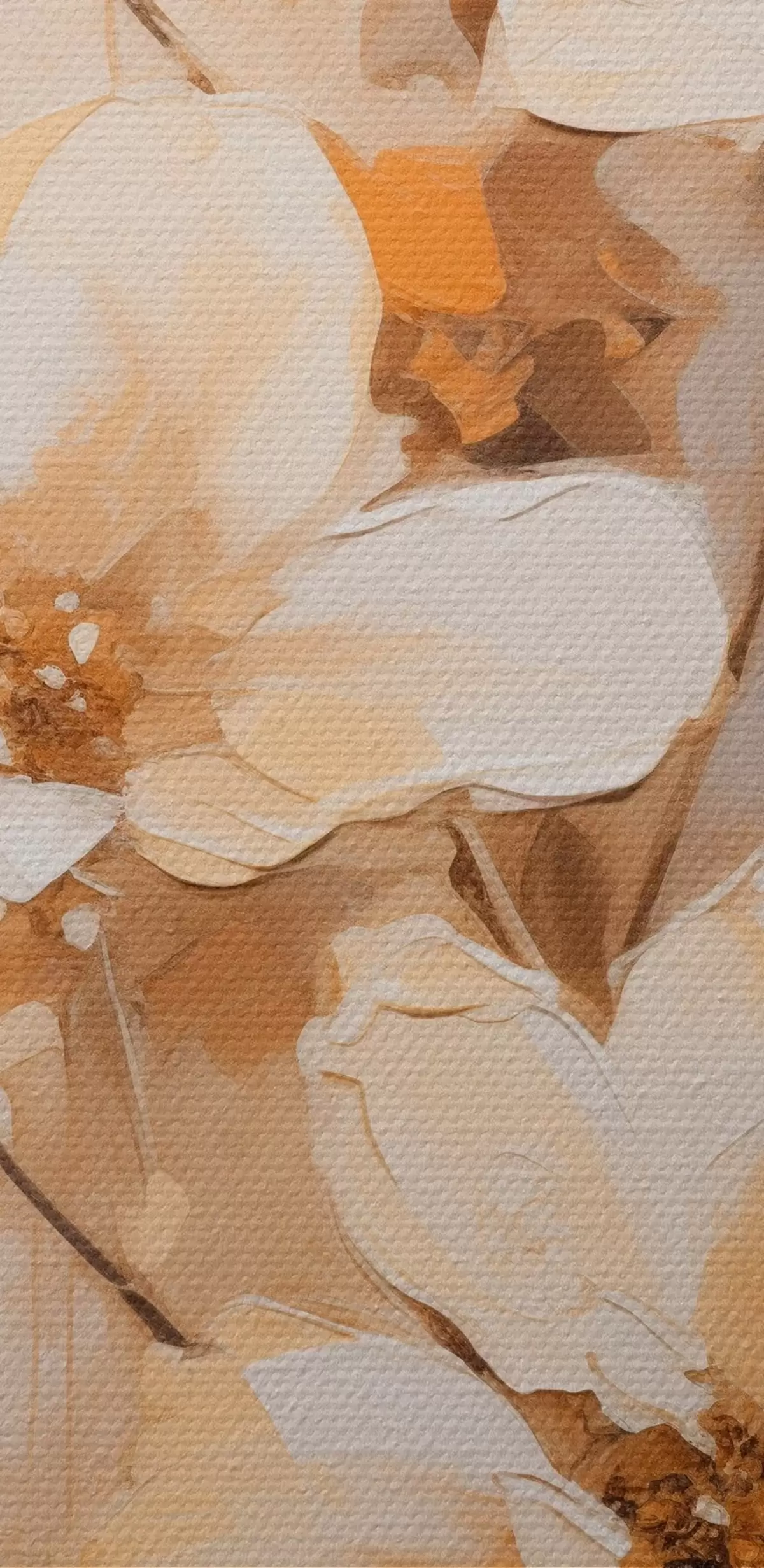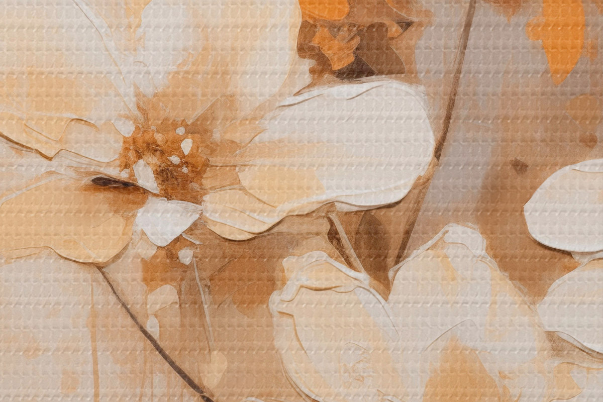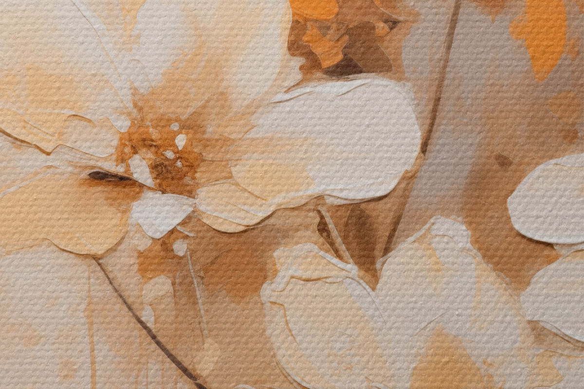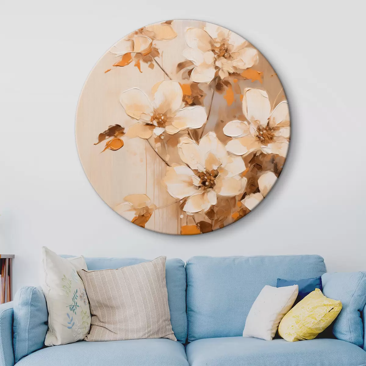 Кругла картина Білі квіти з помаранчевим листям, ніжні мазки, квіткова композиція, ботанічне мистецтво Nr r45574
