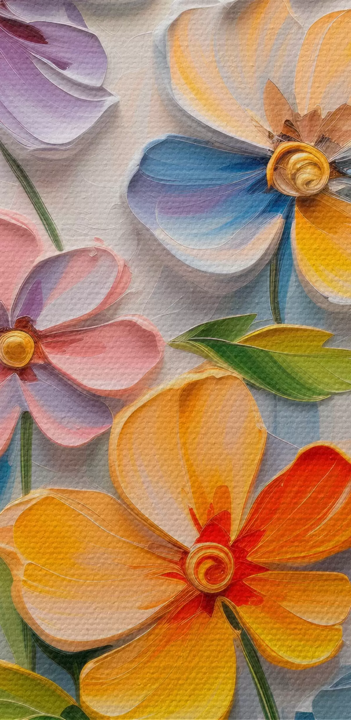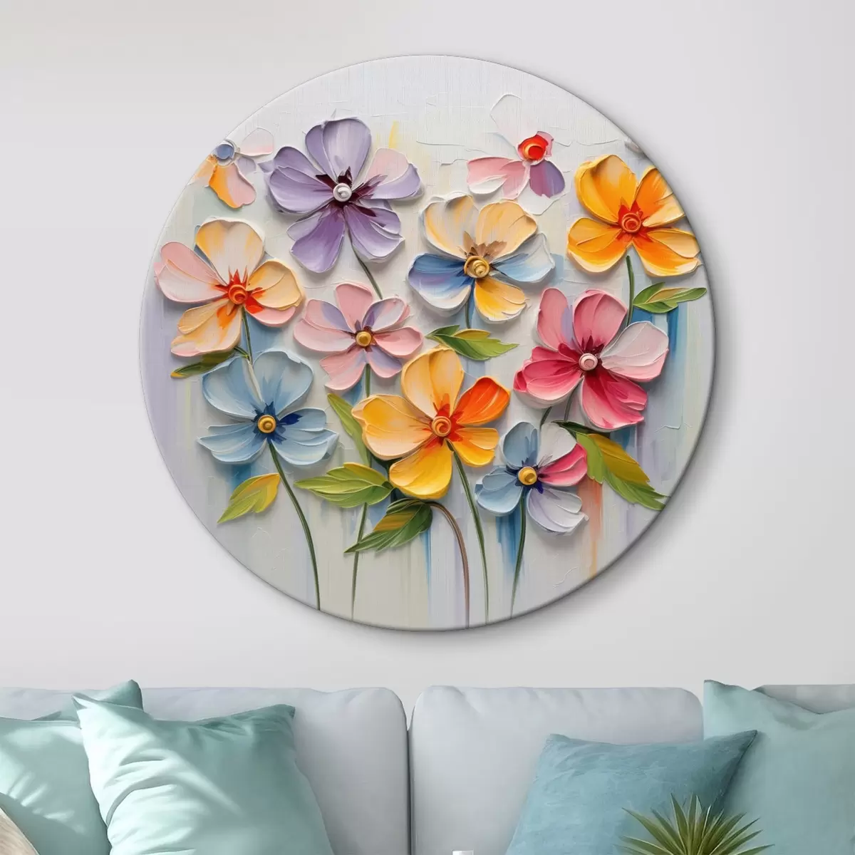 Кругла картина Квітковий натюрморт: різнокольорові квіти в техніці імпасто Nr r45598