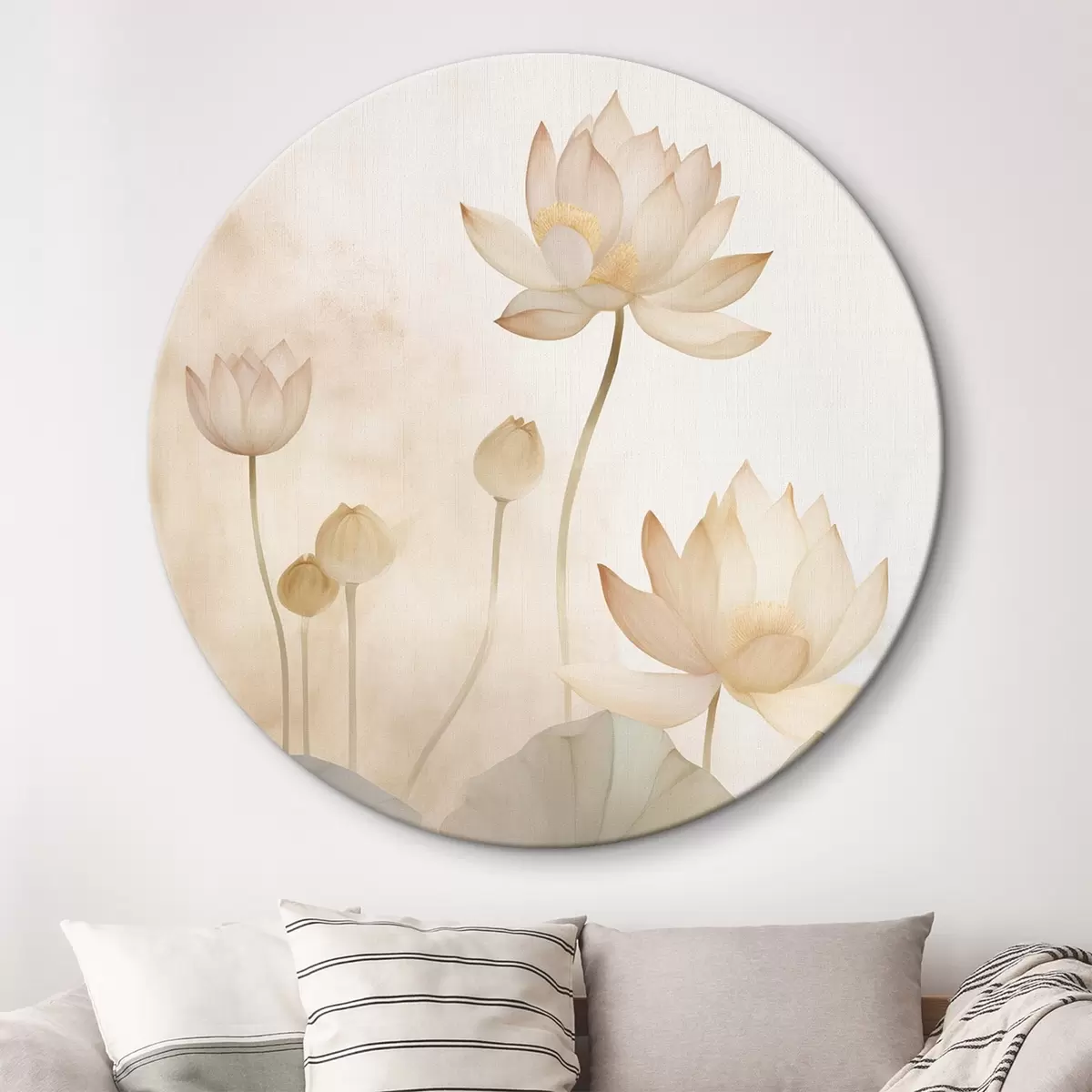 Кругла картина Світлі квіти лотоса Nr r45612