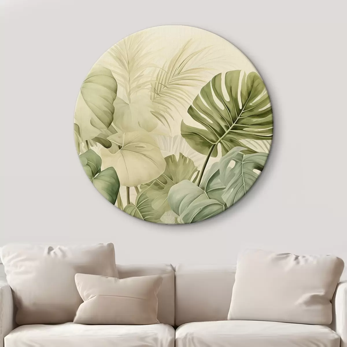 Кругла картина Тропічне листя та листя монстери Nr r45615