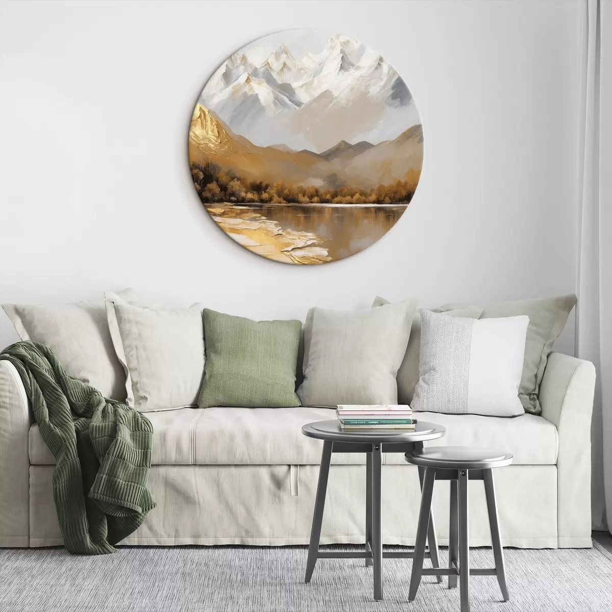 Кругла картина Гірський пейзаж з озером і деревами r45620