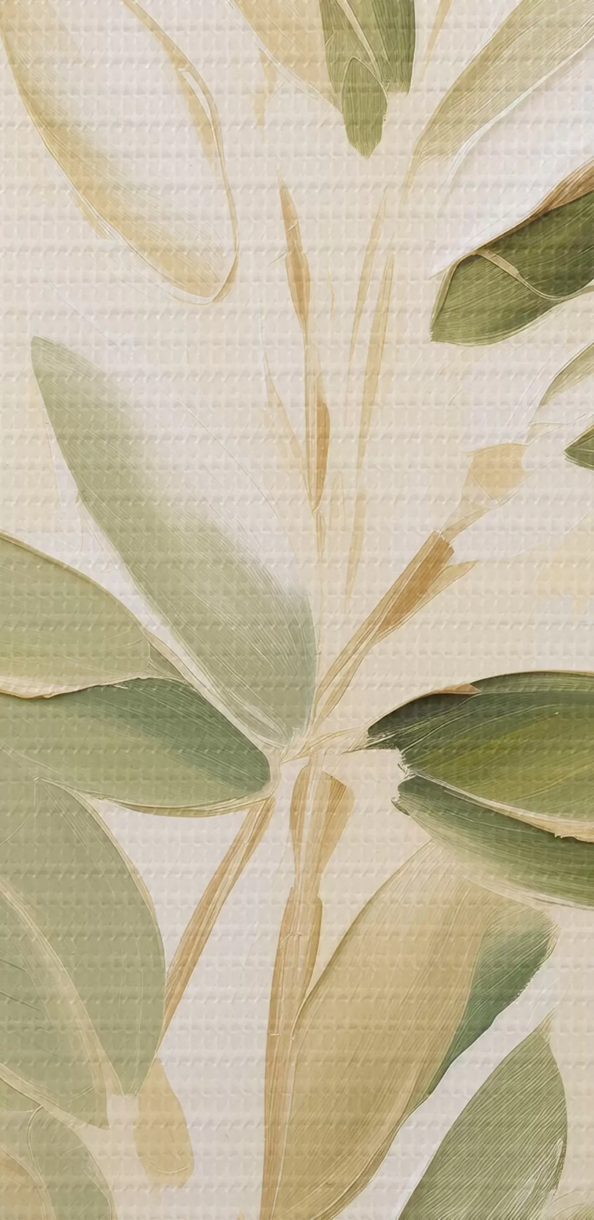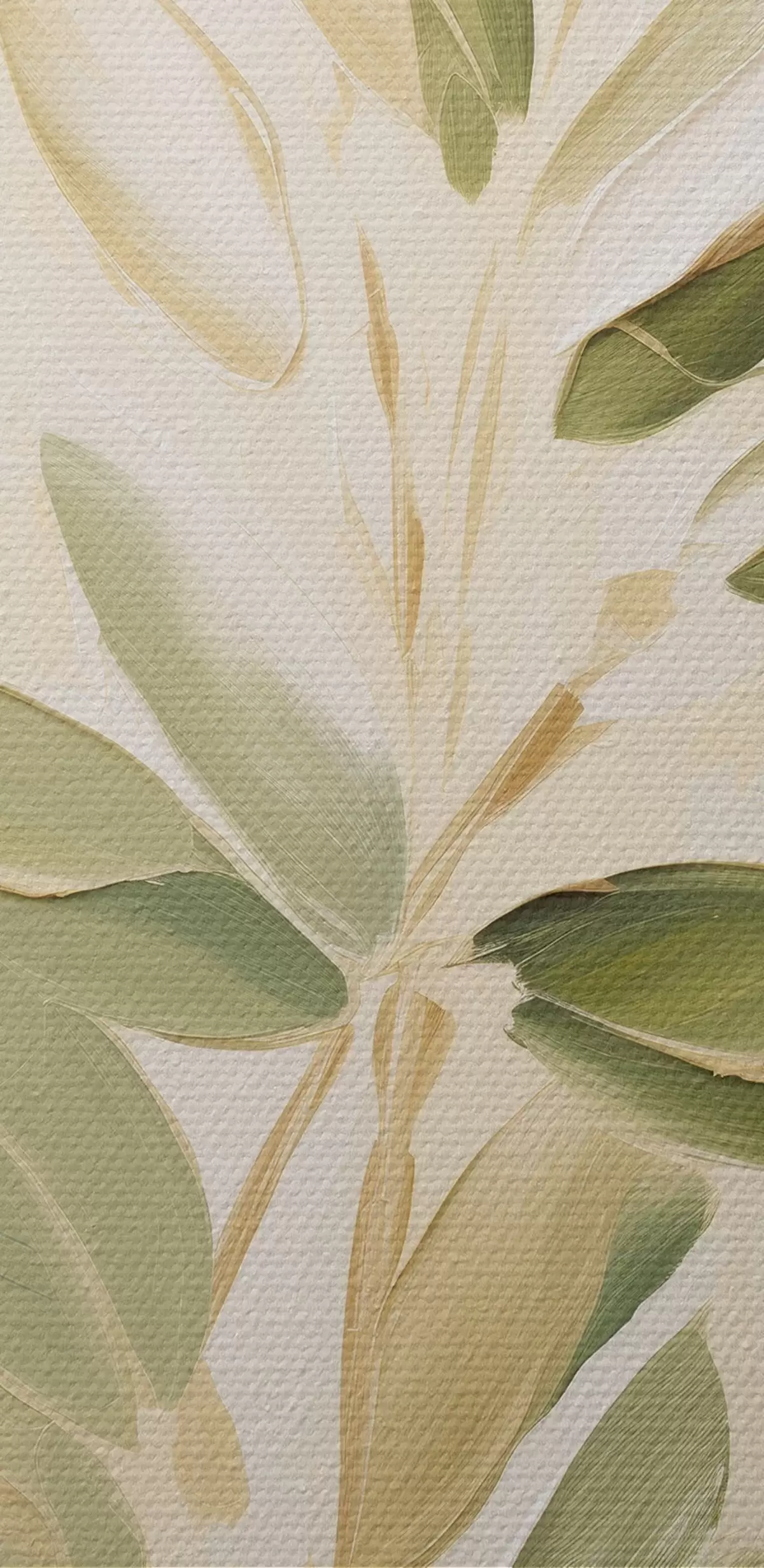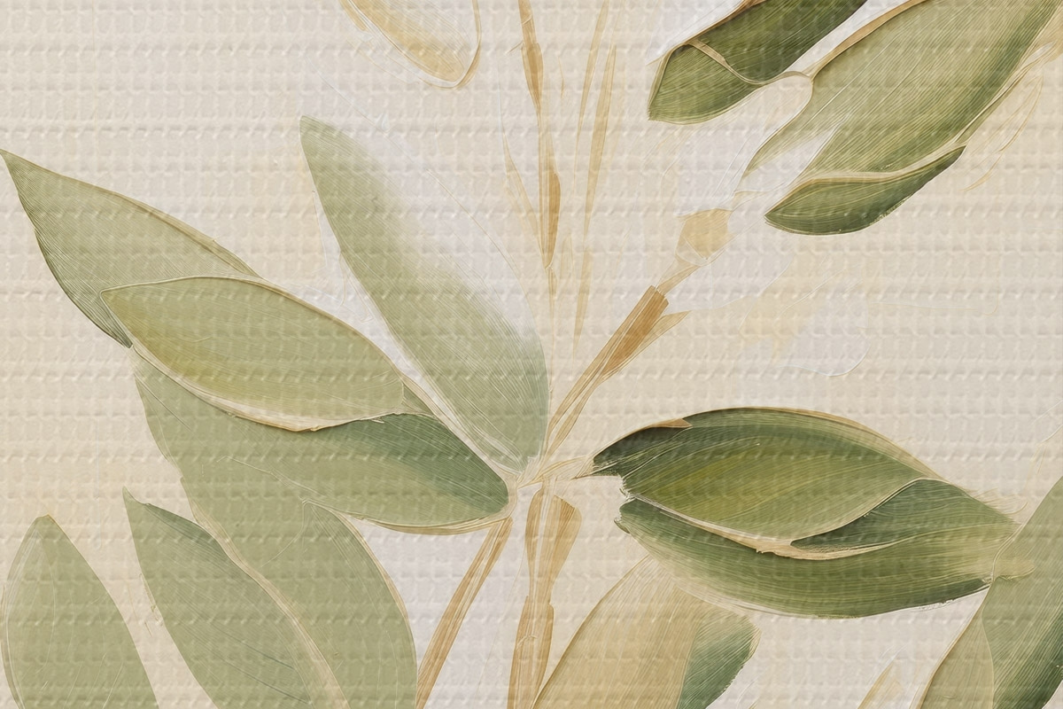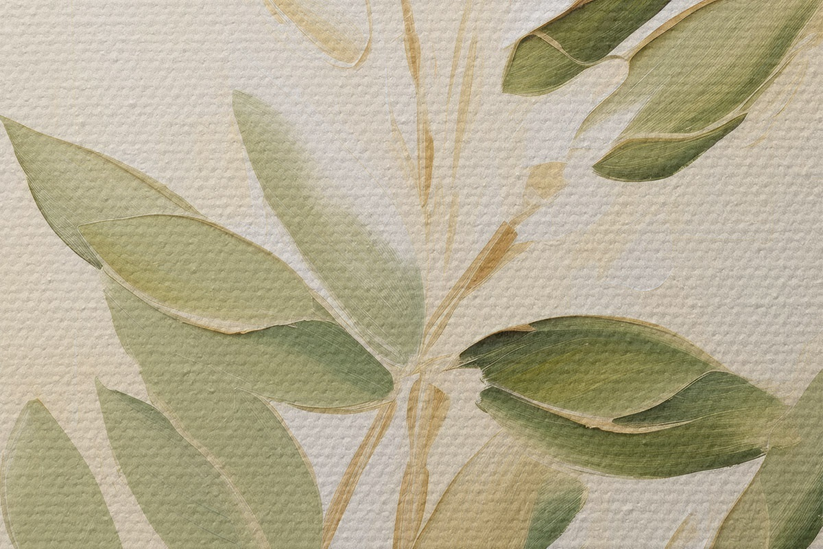 Кругла картина Гілка з зеленим листям на світло-бежевому тлі Nr r45689