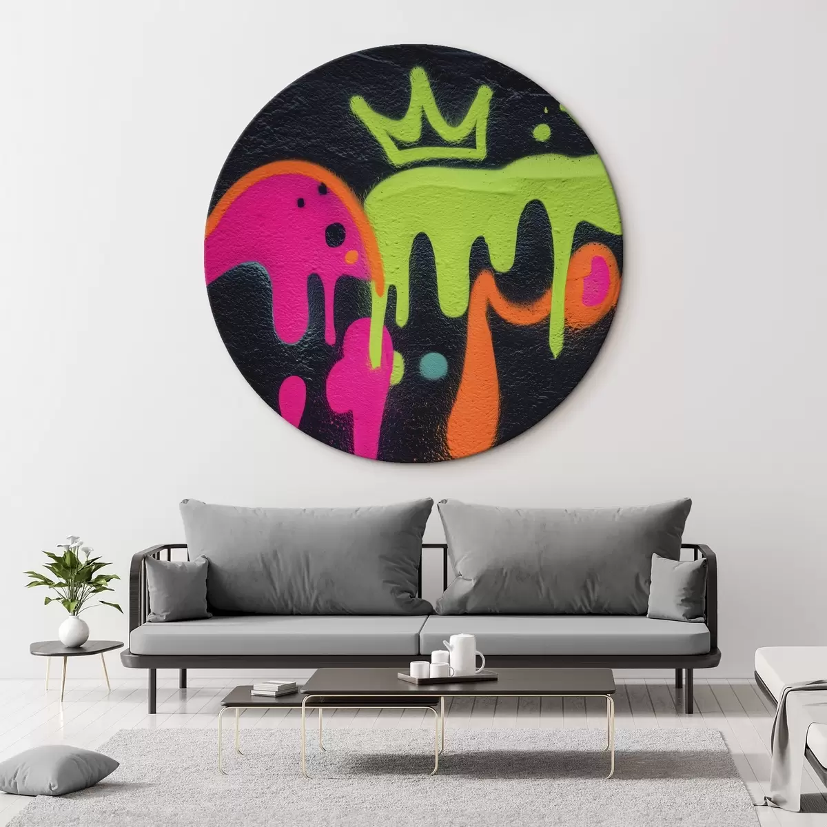 Кругла картина яскраві вуличні графіті на темному тлі Nr r45716