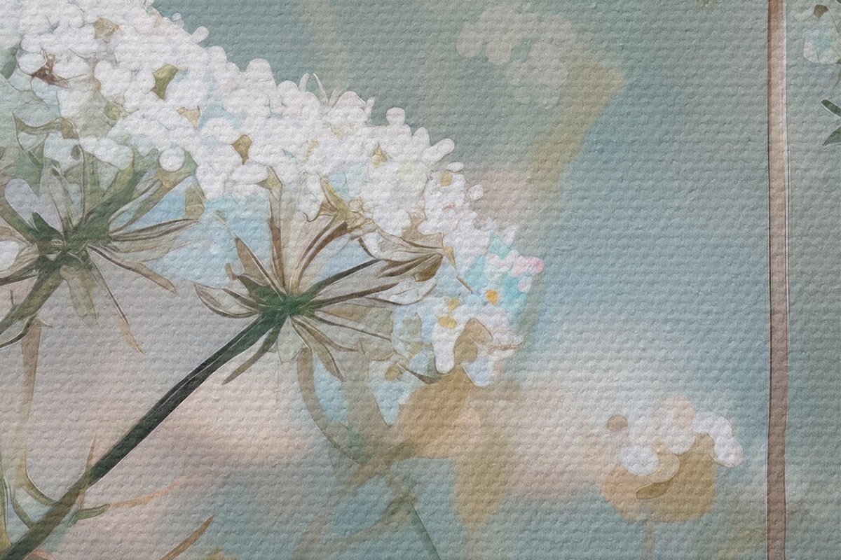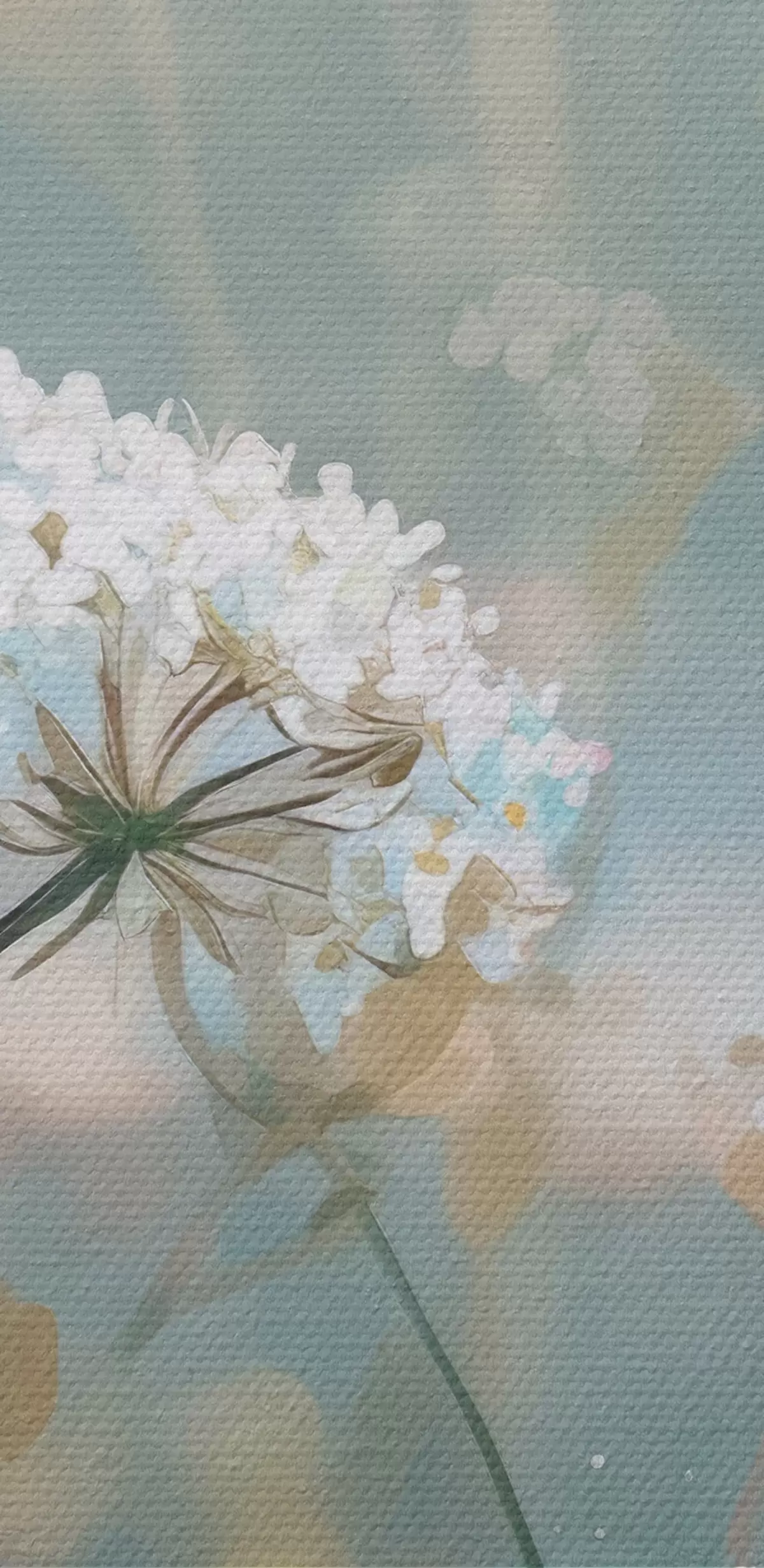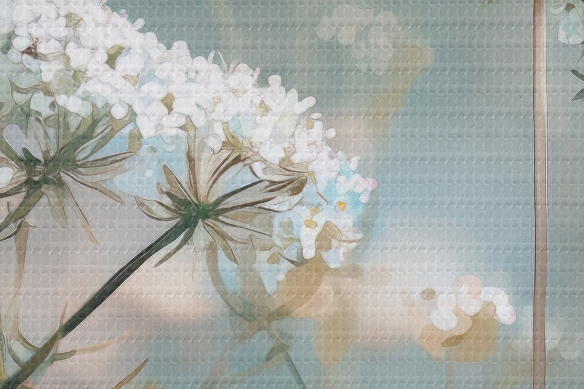 Кругла картина Квіти королеви Анни в акварельному стилі на синьому тлі Nr r45721