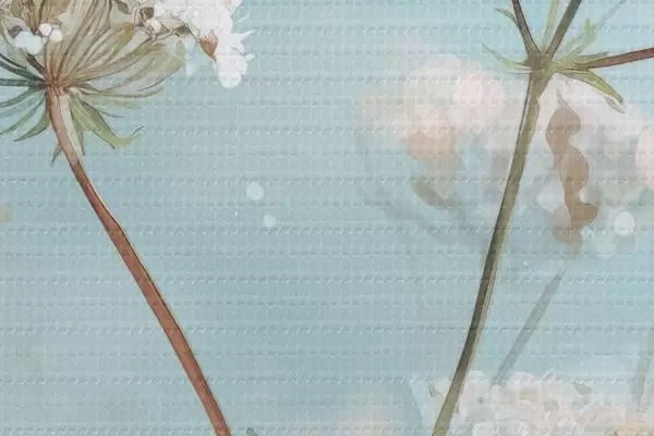Кругла картина Квіти королеви Анни в акварельному стилі на синьому тлі Nr r45722