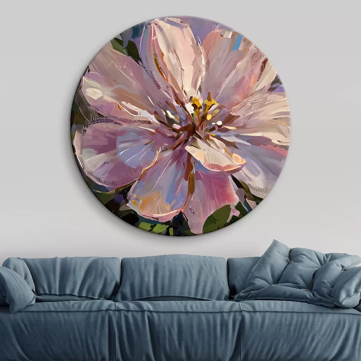Кругла картина рожеві квіти в стилі олійного живопису Nr r45723