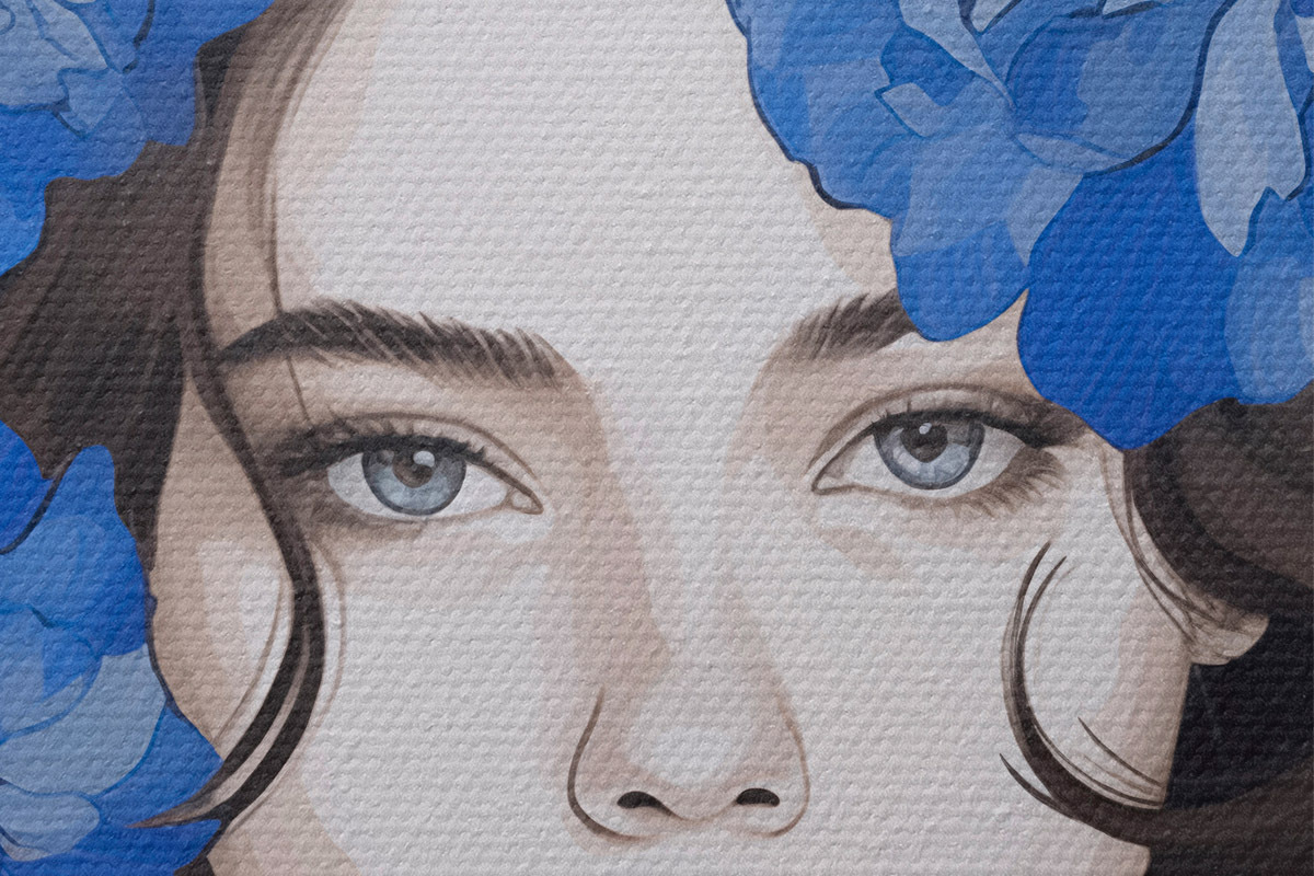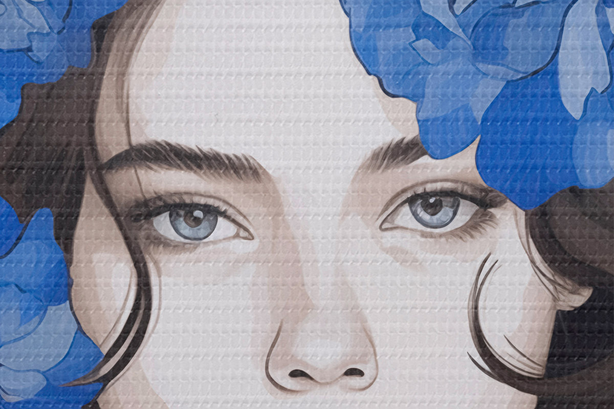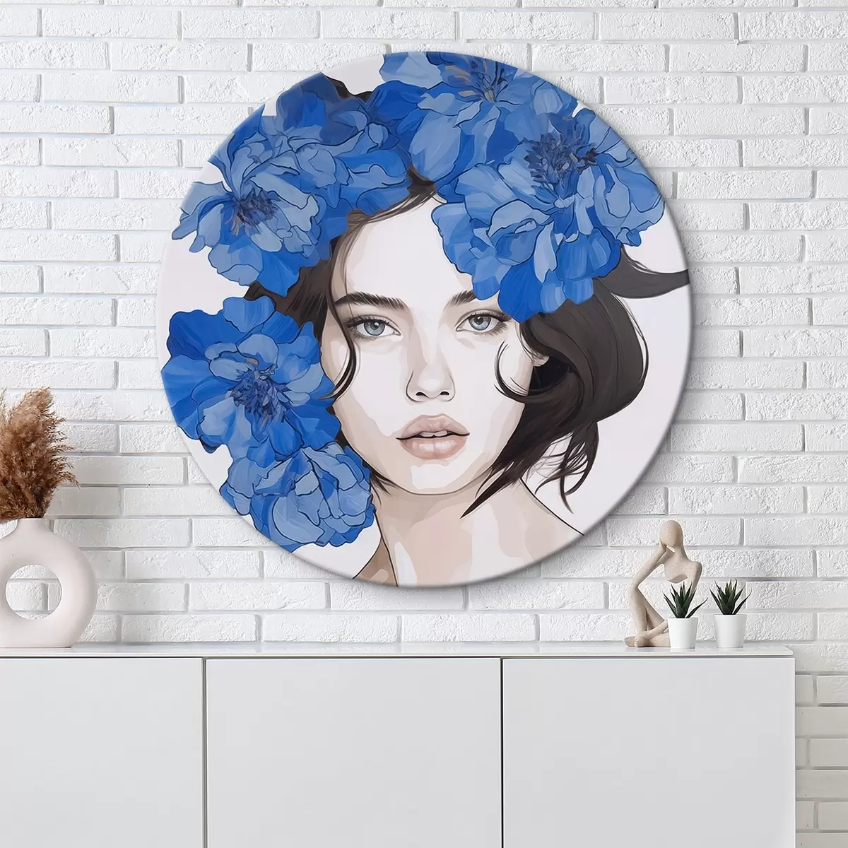 Кругла картина Портрет дівчини з блакитними квітами Nr r45756