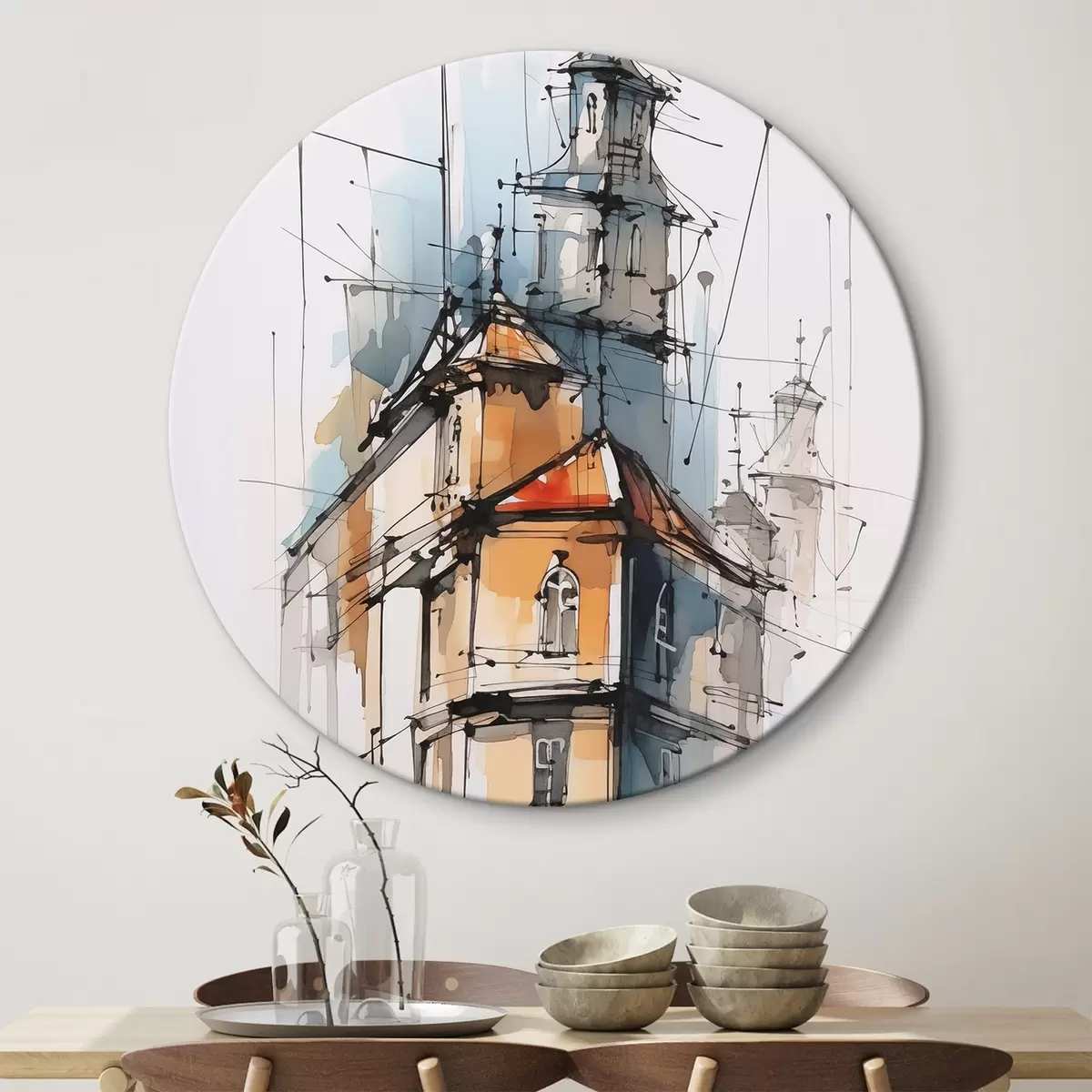 Кругла картина Будинки імітація ескіз і акварель Nr r45765