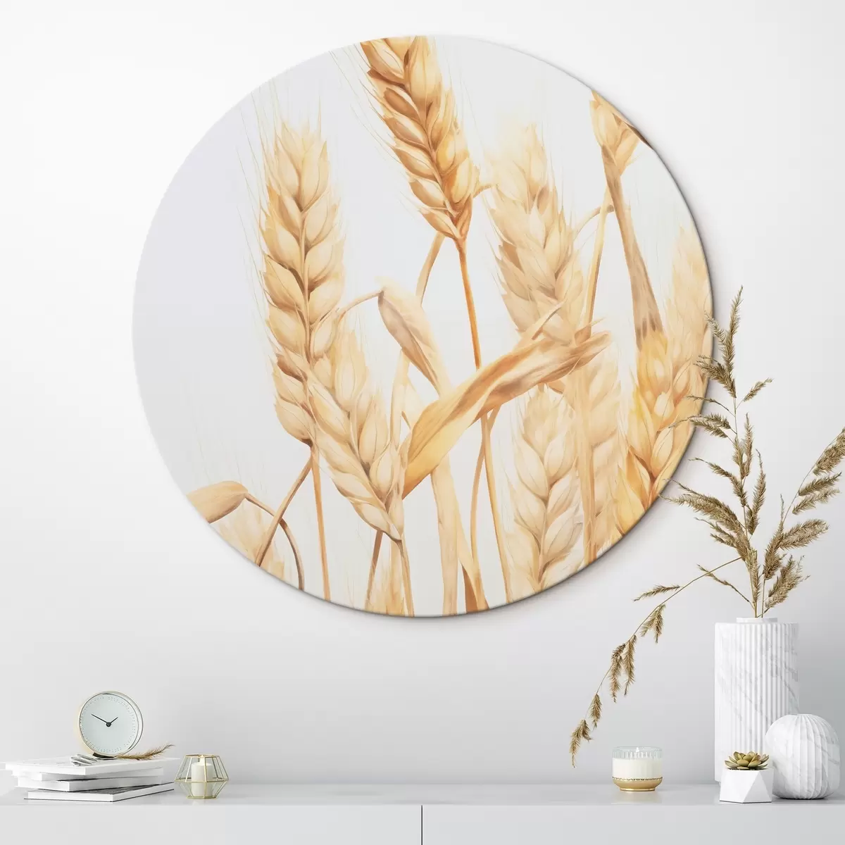 Кругла картина Імітація пшеничних колосків аквареллю Nr r45769