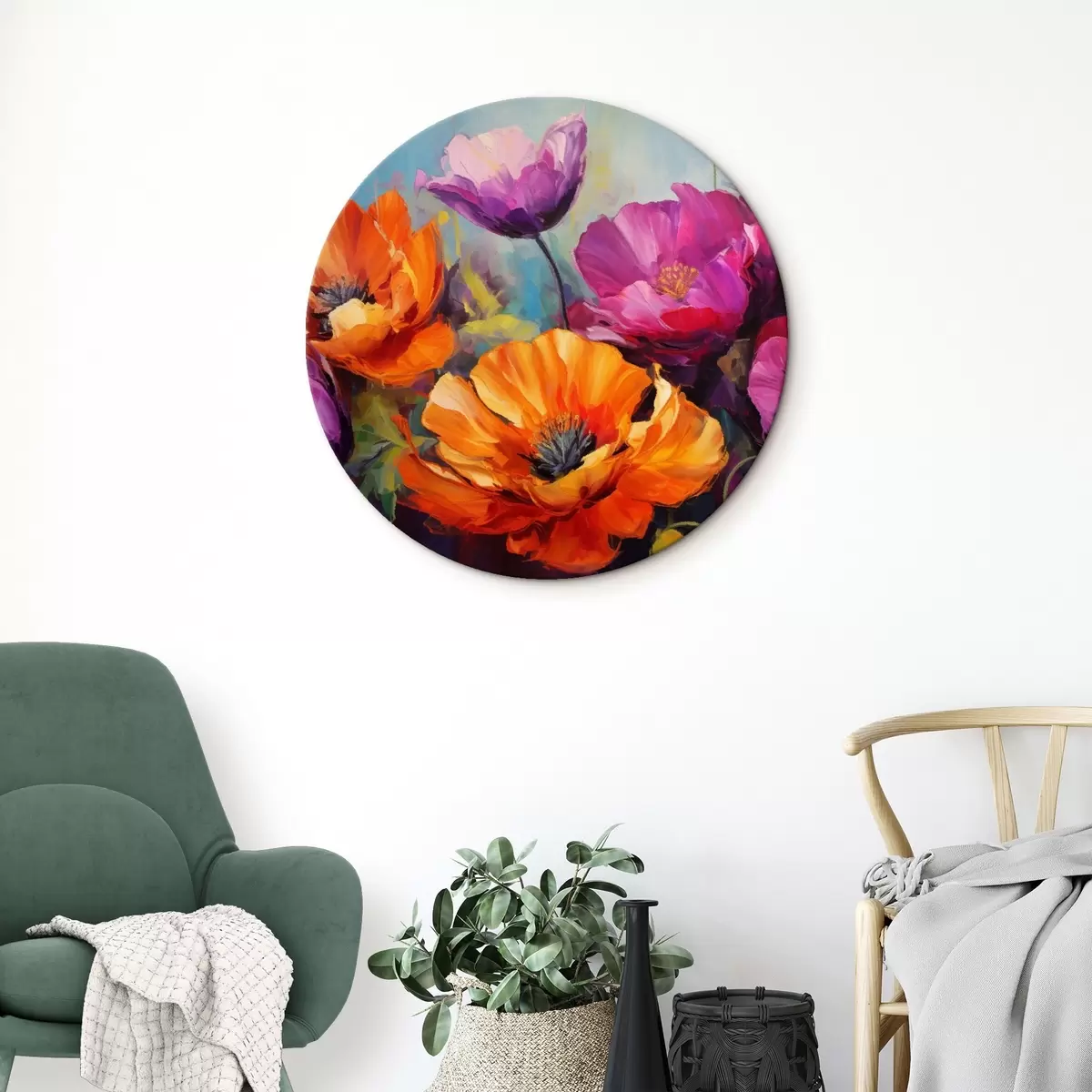 Кругла картина Яскраві маки у фіолетових та помаранчевих відтінках Nr r45804