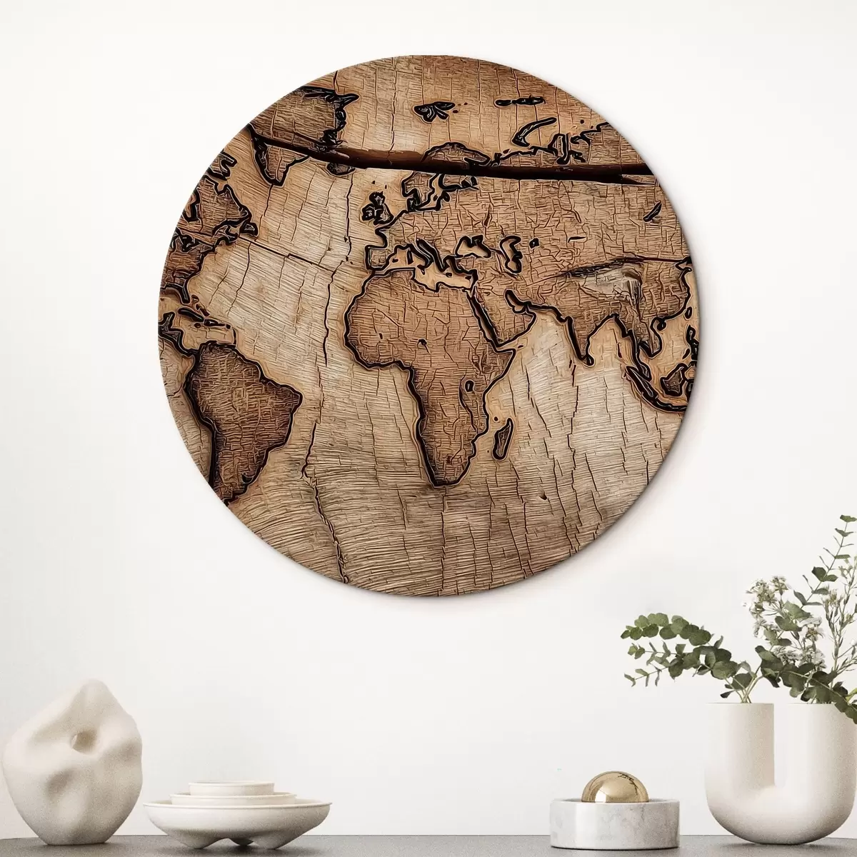 Кругла картина Гравюра на дерев'яній карті світу Nr r45805