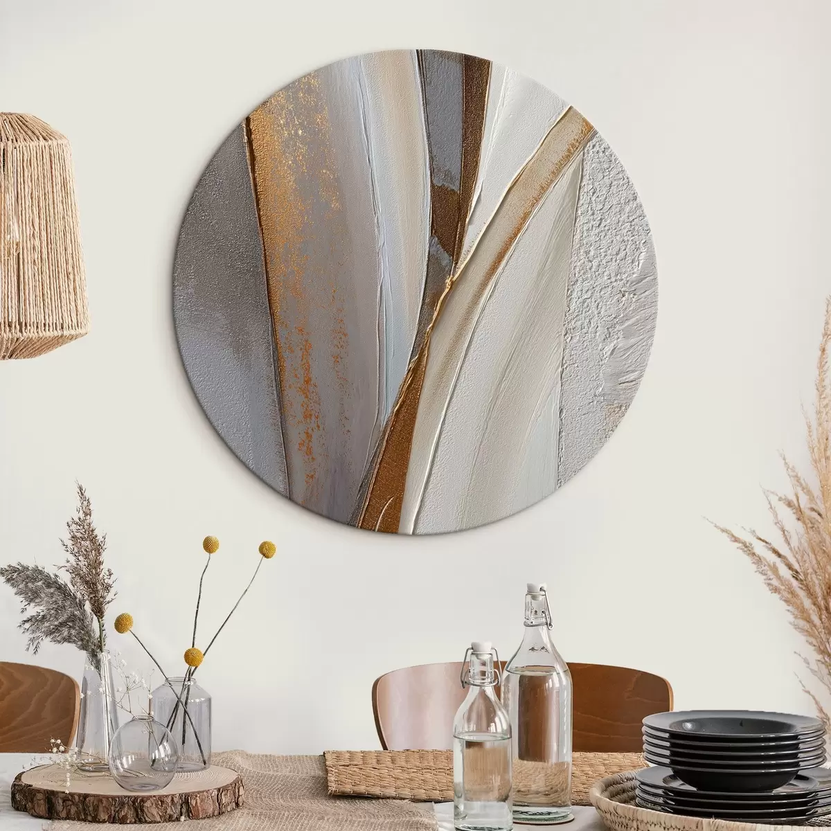 Кругла картина Текстуровані абстрактні лінії з жовтими та помаранчевими блискітками Nr r45810