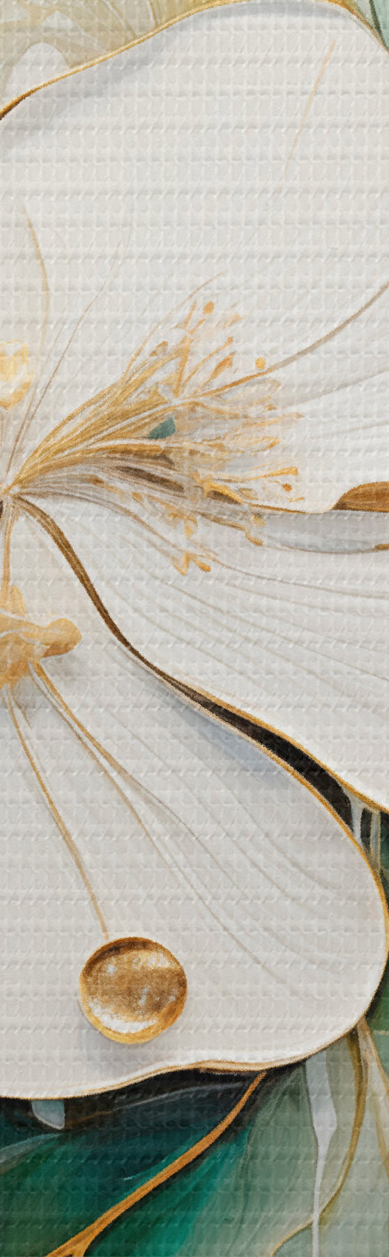 Кругла картина Біла квітка з жовто-помаранчевими деталями та зеленим листям Nr r45815
